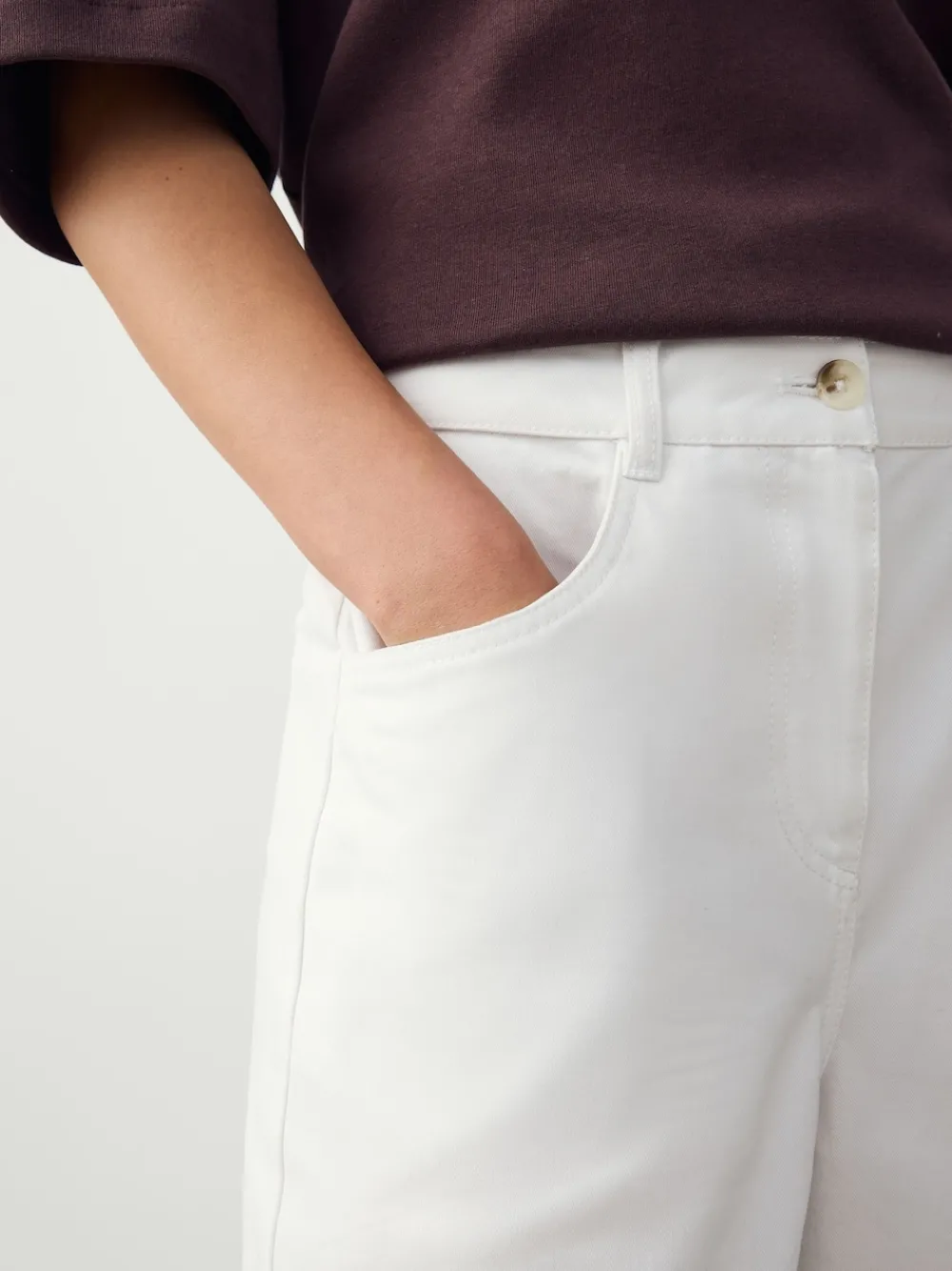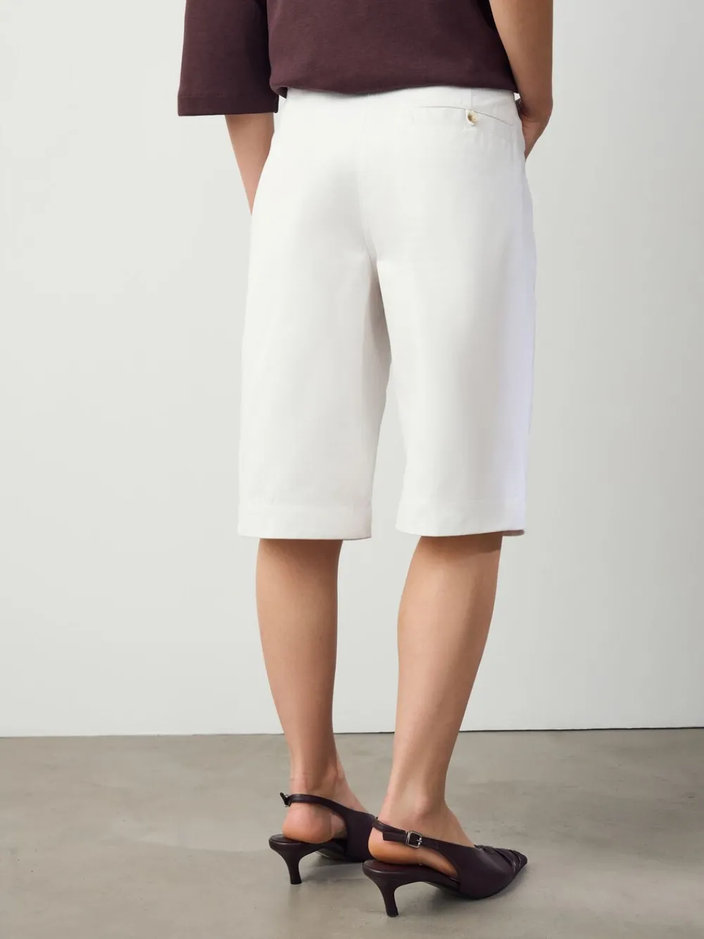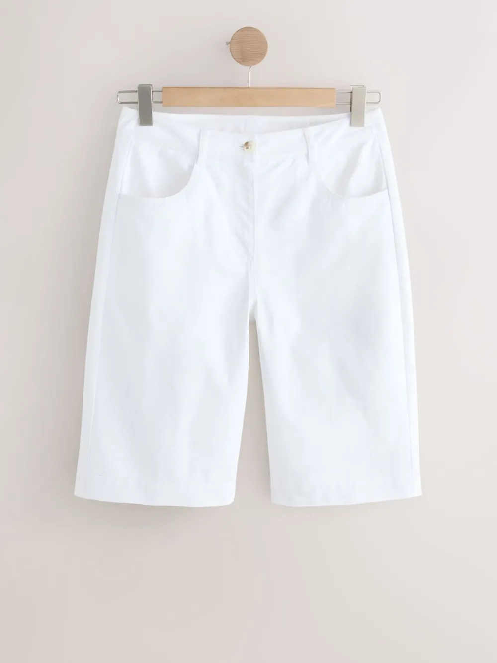 Step into summer with these comfortable, knee-length white shorts. Made from a soft cotton fabric, they feature front functional pockets and a button and zip fastening, making them a practical and versatile addition to your warm-weather wardrobe. Cotton jorts Front functional pockets Knee length Button and zip fastening Machinewasbaar. 100% katoen. Artikelen met het curve-logo zijn verkrijgbaar in de maten 18 en groter.