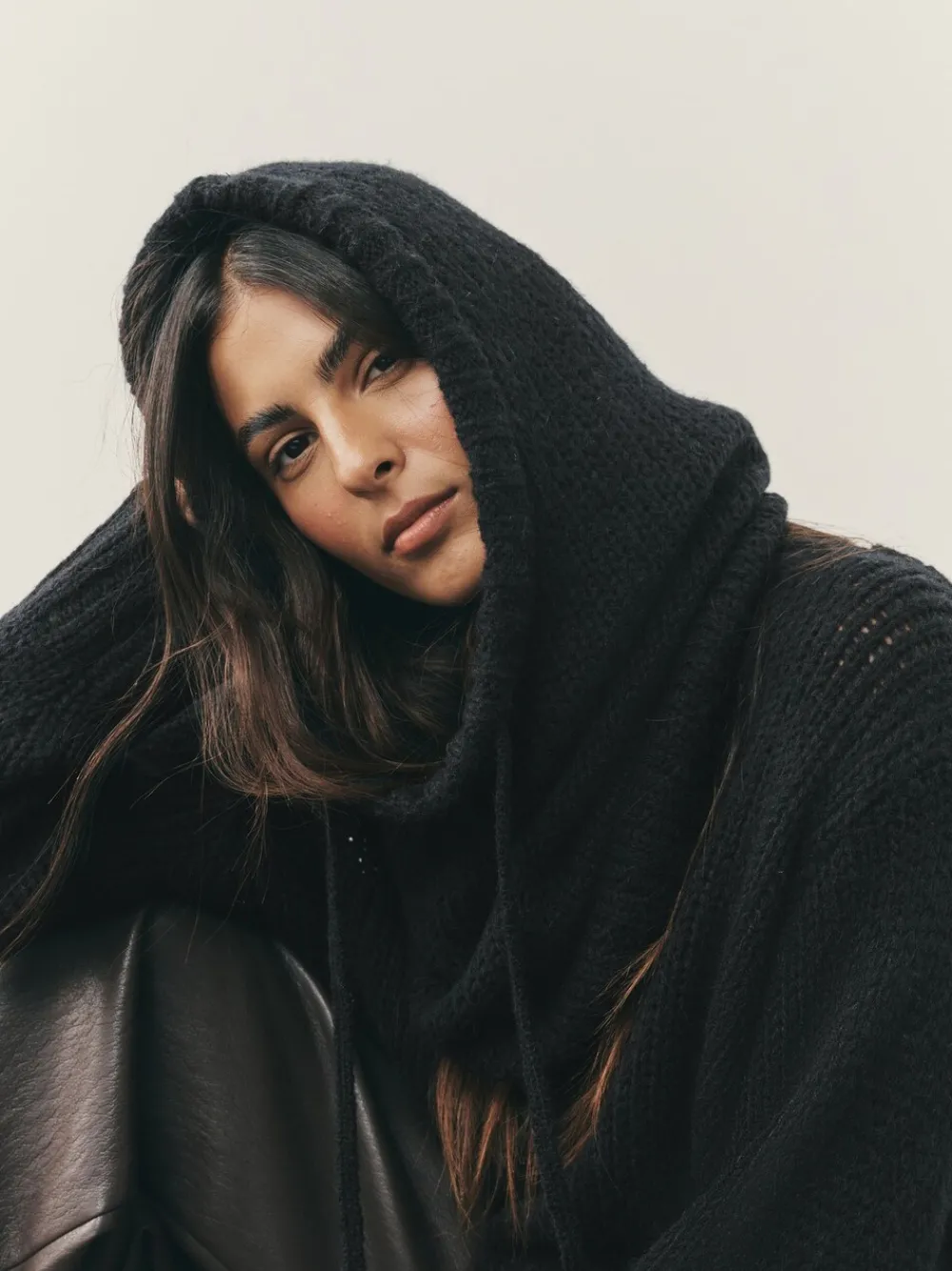 This black knit balaclava is the ultimate expression of cosy, avant-garde elegance, transforming winter layering into a statement. Crafted from a chunky, soft knit, its slouchy silhouette and knit drawstring offer adjustable comfort and a snug fit. This versatile piece provides unparalleled warmth while complementing the coordinating jumper for a truly distinctive, less ordinary look. Chunky, soft knit fabrication Adjustable knit drawstring tie Snug, yet slouchy silhouette Coordinating item for cohesive style Versatile winter accessory 41% nylon, 31% polyester, 21% acryl, 7% wol.