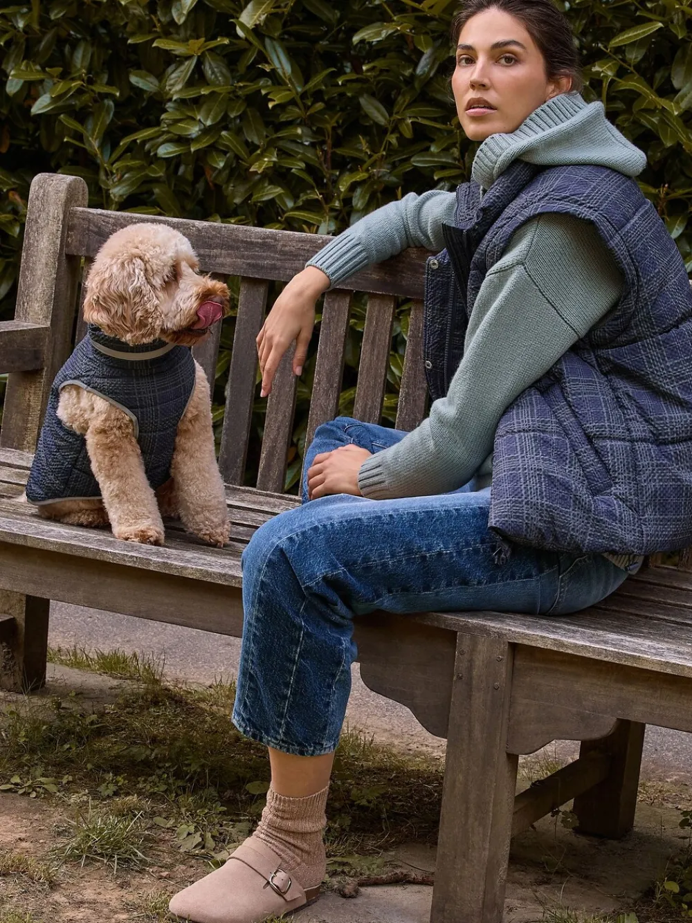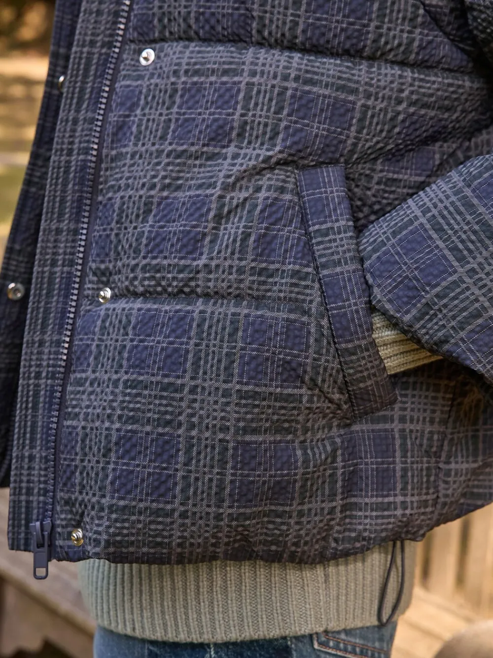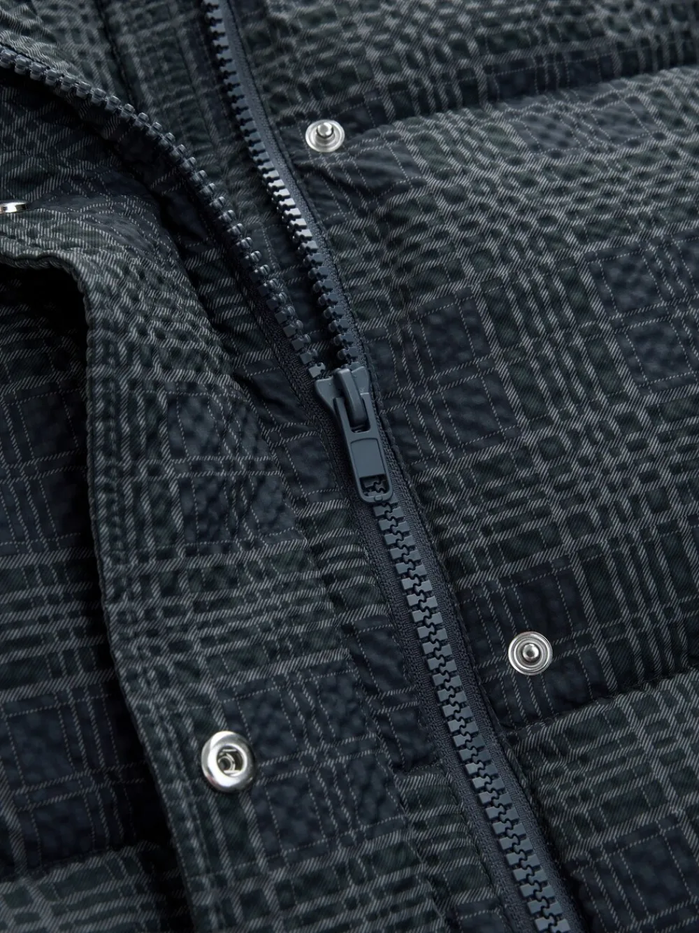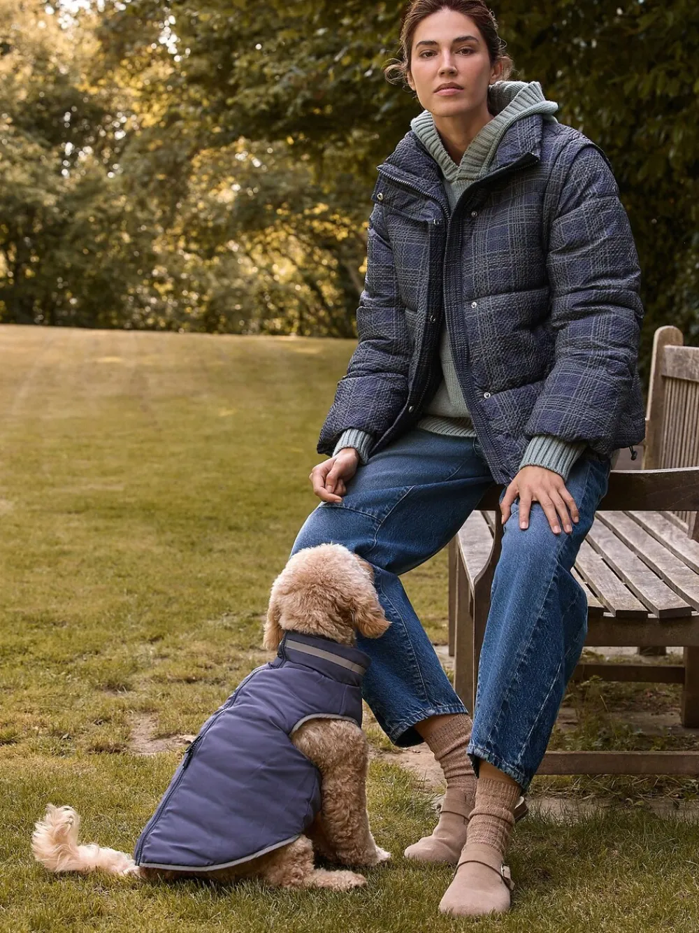 Introducing the ultimate versatile autumn/winter staple: this stylish navy check padded coat. Featuring detachable sleeves, it quickly converts into a chic gilet for transitional weather. The high neck, adjustable hem, and side pockets offer warmth and practicality, secured by a zip and popper fastening. Padded design Navy check print Detachable sleeves Short length High funnel neck Popper and zip fastening Adjustable hem Side pockets Standaardmaat van het midden van de nek tot de zoom 25″ / 64 cm. Machinewasbaar. Buitenkant 100% gerecycled polyester. Voering 100% gerecycled polyester. Vulling 100% gerecycled polyester.