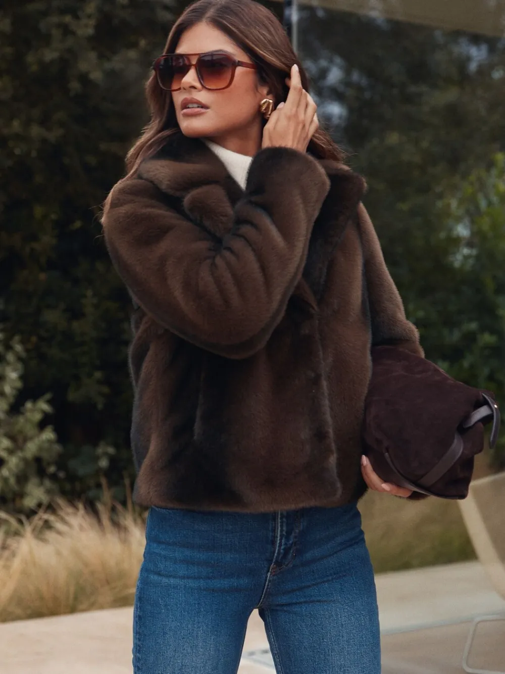 Hul uzelf in luxe met deze zachte, korte jas, het ultieme statement piece voor de winter. Craft van zacht imitatiebont, met een brede kraag en reverskraag voor een verfijnde warmte. Door de korte lengte is deze top perfect voor zowel casual kleding als voor speciale gelegenheden. De top is voorzien van discrete zakken in de zijnaad. Korte lengte Zachte pluche imitatiebont Kraag en reverskraag Zijnaadzakken Hoofdbestanddeel 100% polyester. Voering 100% polyester.