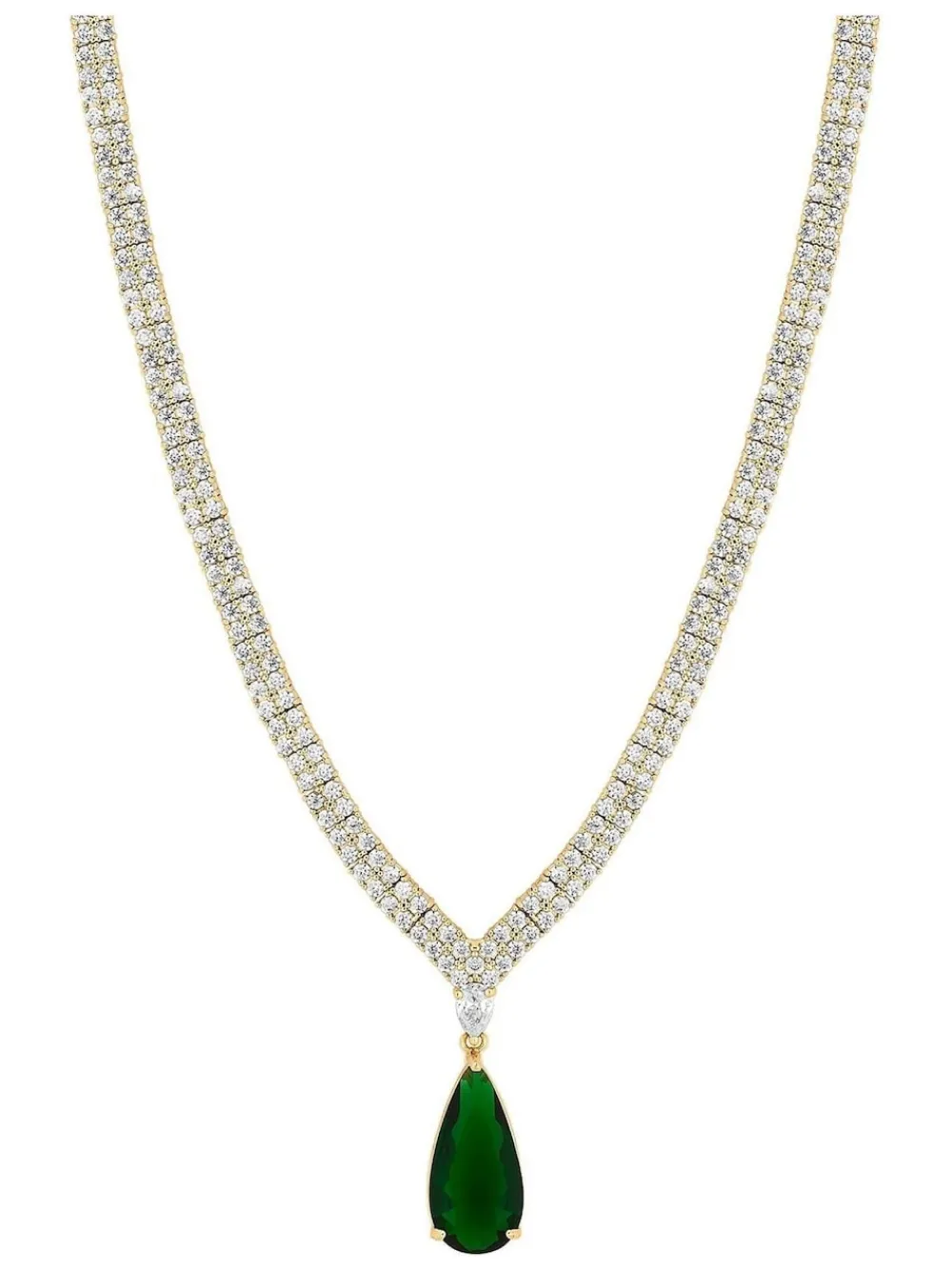 kraagketting met zirkoontjes en smaragdgroene peervormige hanger in geschenkdoosje*Jon Richard Sale