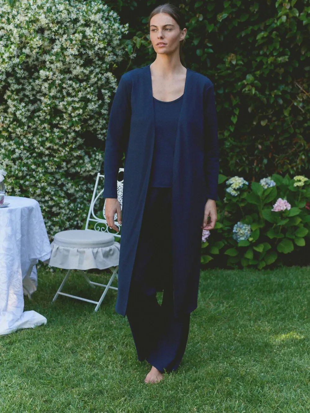 Wrap yourself in luxury with this elegant lounge cardigan from Laura Ashley. Designed in a soft cotton blend, the full length cardigan has an open front with side slit details and drapes beautifully. Perfect for slow mornings and cosy evenings, complete your loungewear look with the matching trousers and vest for the ultimate day off style. Long line cardigan Open front style Side slit detail Matching items also available Machinewasbaar. 60% katoen, 40% polyester.