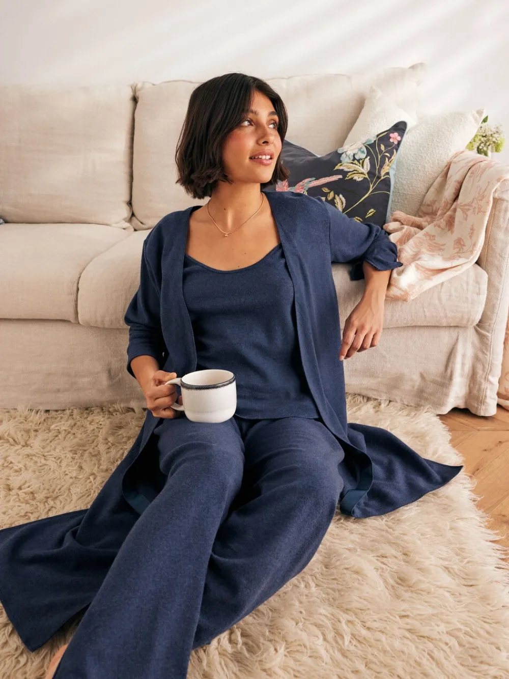 Omhul uzelf met luxe met dit elegante vest van Laura Ashley. Het lange vest is gemaakt van een zachte katoenmix in een klassieke marineblauwe tint. Het heeft een open voorkant met zijsplitten en valt prachtig. Ideaal voor rustige ochtenden en gezellige avonden. Maak je Loungewearlook compleet met de bijpassende Broeken en vest voor de ultieme vrijetijdsstijl. Longline Vesten Open voorkant Zijsplit detail Bijpassende Items ook verkrijgbaar Machinewasbaar. 60% katoen, 40% polyester.