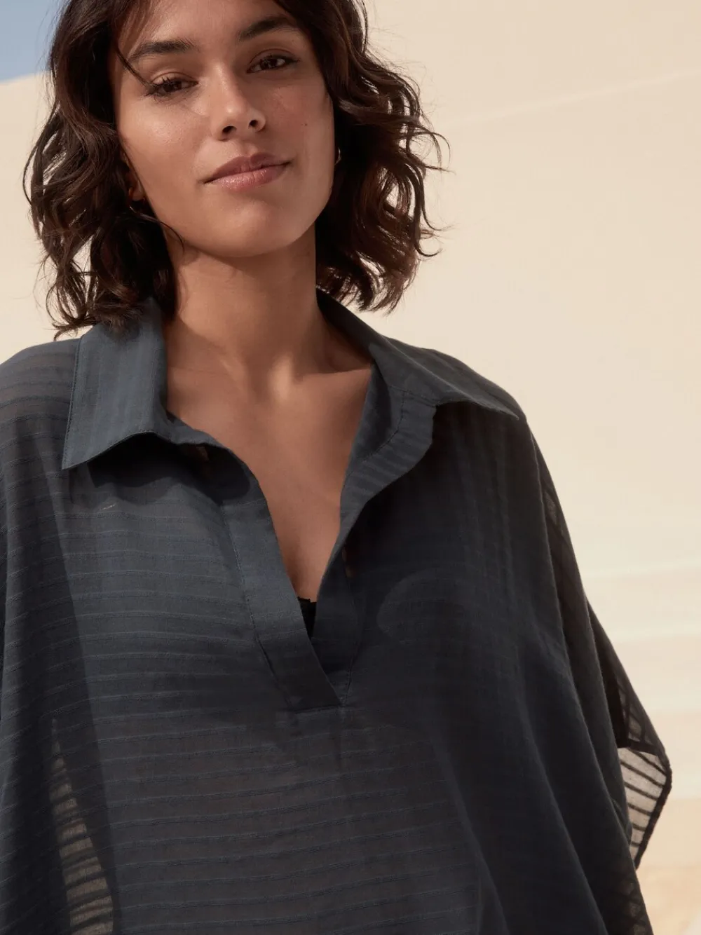 Deze lichte en ademende witte cover-up is perfect voor een zomerse look. Hij heeft een lange, oversized pasvorm met een design dat je over je hoofd kunt dragen, een textuur die goed aanvoelt en mooie details bij de kraag. 100% katoen Lange vorm Gestructureerd gevoel Kraagdetails 100% katoen.