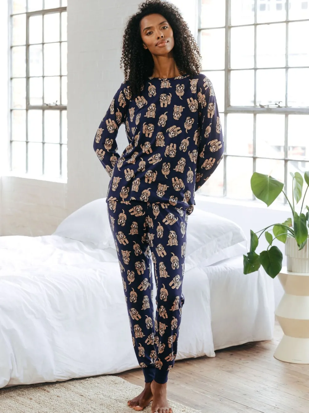 Lange pyjamaset met cockapoo-print en ronde hals*Chelsea Peers Sale