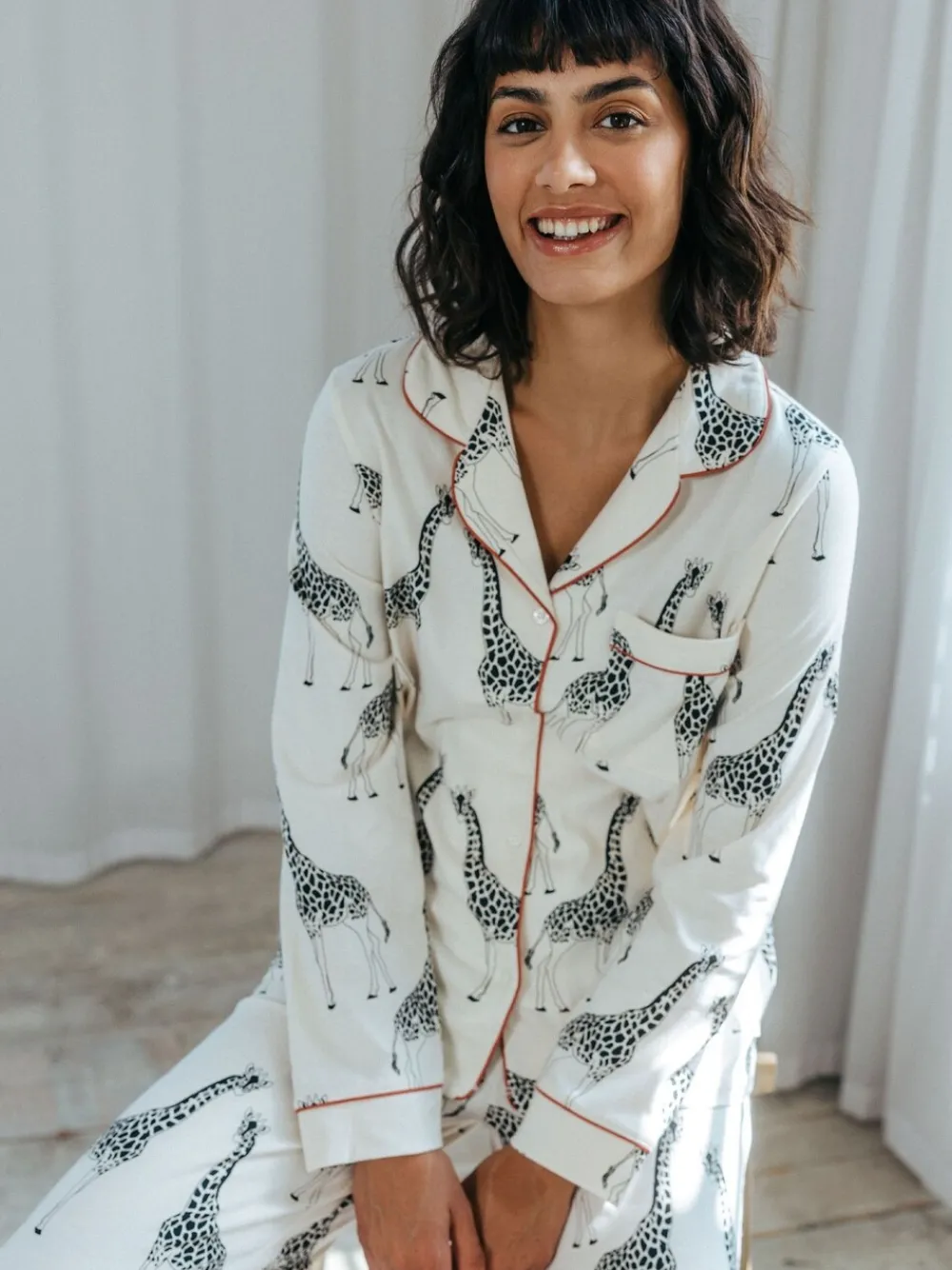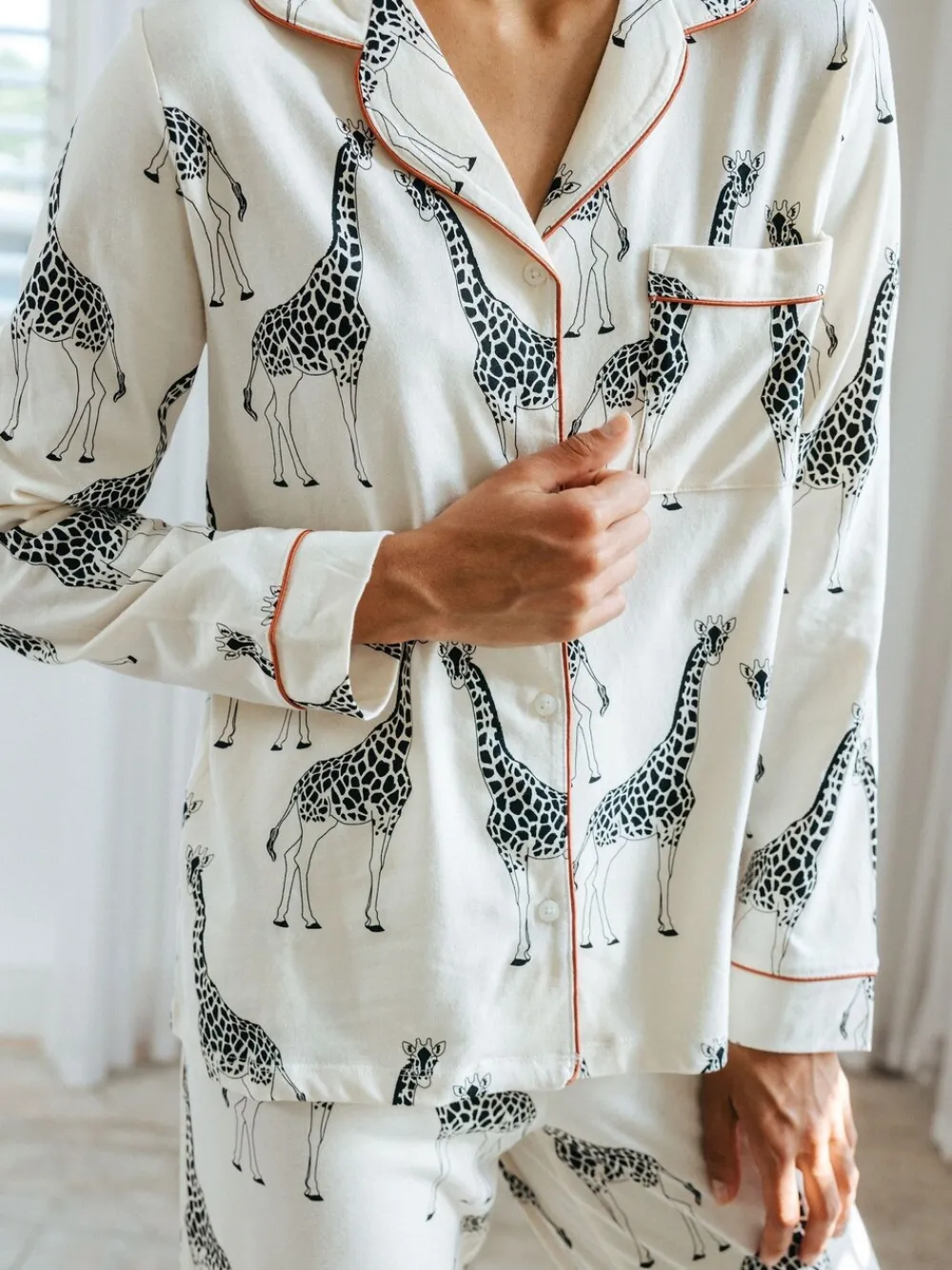 – – Lange pyjamaset met giraffenprint en knopen*Chelsea Peers Sale