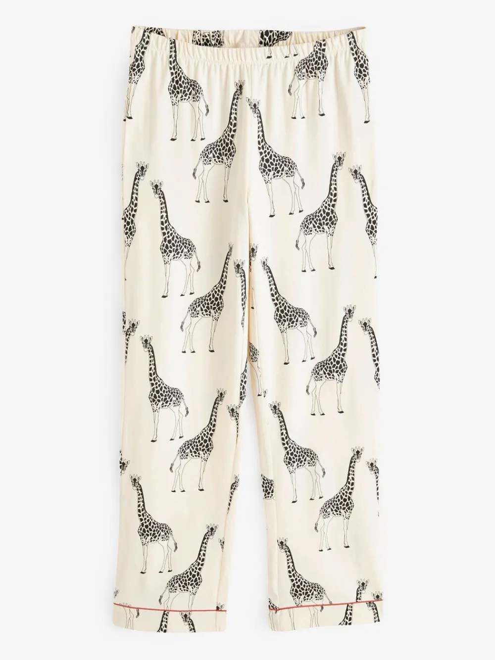 Relax this evening in these women’s cream pyjamas, featuring our bestselling giraffe print. This cotton pyjama set includes a flattering revere collar shirt and matching trousers with our signature elasticated waistband Machinewasbaar. 95% polyester, 5% elastaan. Waarschuwing: weg houden bij vuur en vlammen.