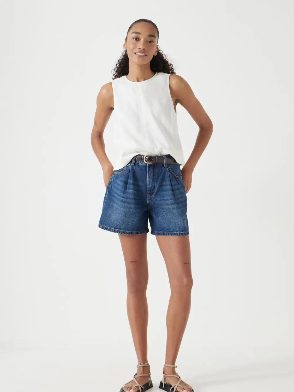Bent u nog steeds op zoek naar de perfecte denim shorts? Probeer Larissa eens. Dankzij de ruime pijpen zit de jurk comfortabel (zelfs op echt warme dagen) en dankzij de geplooide voorkant voelt u zich moeiteloos verzorgd. Standaard binnenbeenlengte 4,5″/12 cm. Mag gewassen worden. 99% Katoen, 1% elastaan.
