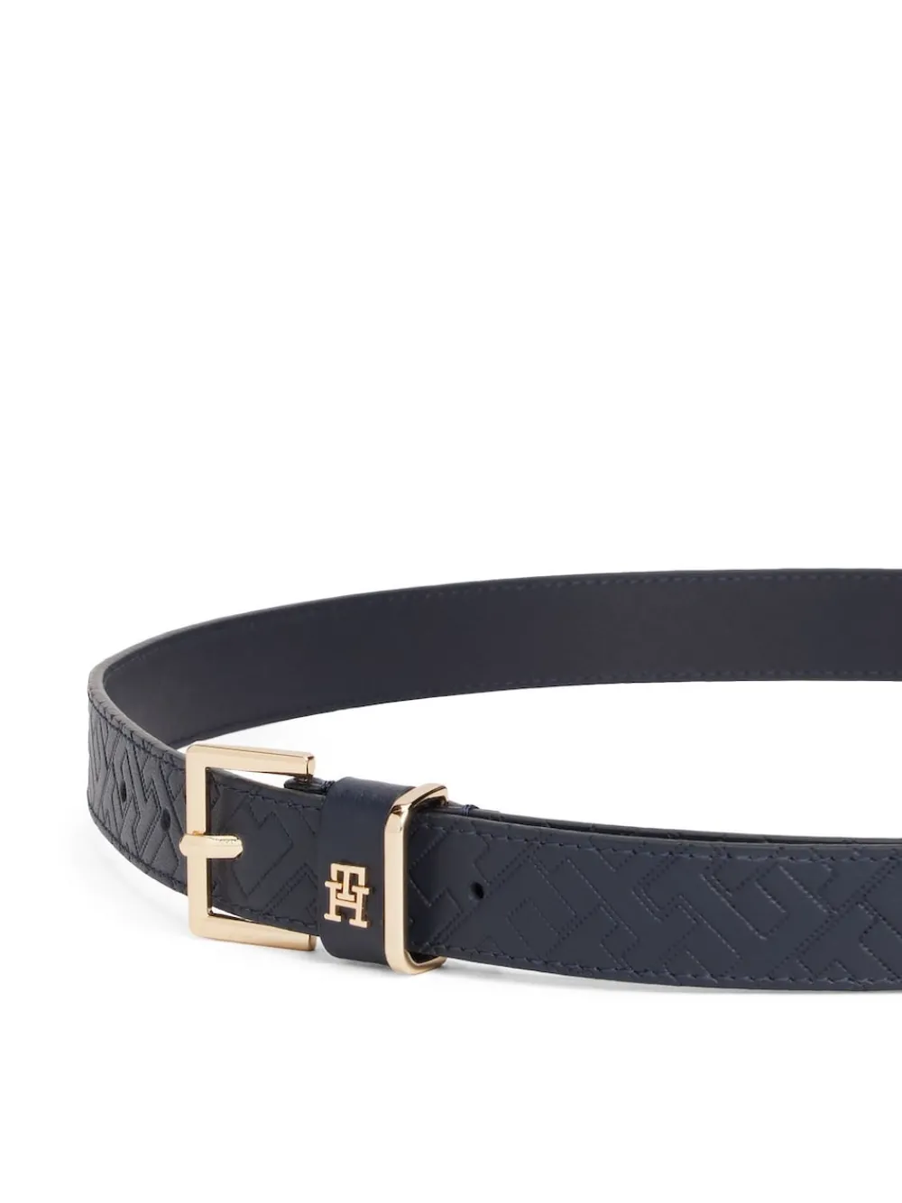 Amp up your ensembles with this leather belt, featuring an all-over embossed TH monogram pattern for a luxe finish. Highlights: Leather All-over embossed TH monogram logo Square buckle TH monogram plaque on keeper Tommy Hilfiger branding Shape & fit: Width 2.5cm 100% leer.
