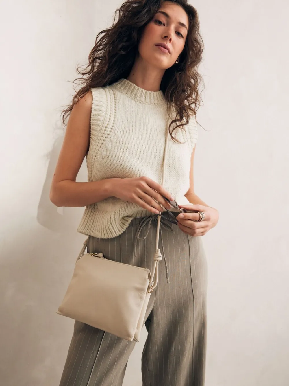 Deze leren crossbodytas heeft een strak, minimalistisch ontwerp met knoop- en kwastdetails op de dunne schouderband en is afgewerkt met een hoofdvak met rits voor uw dagelijkse benodigdheden. Leren constructie Minimalistisch ontwerp Knoop kwastdetails Slanke schouderband Hoogte 17 cm Breedte 23 cm Diepte 5,5 cm Buitenkant 100% leer. Voering 100% katoen.