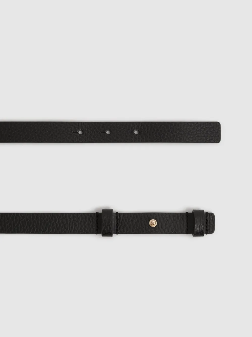 The Black Hayley belt is crafted from premium leather and it features statement gold-tone detailing that will elevate any look. Wear it with black jeans and a leather jacket to compliment your outfit. 100% leather Slim design Gold-tone metal detail Square-hinge fastening Breedte 2,5 cm 100% leer.