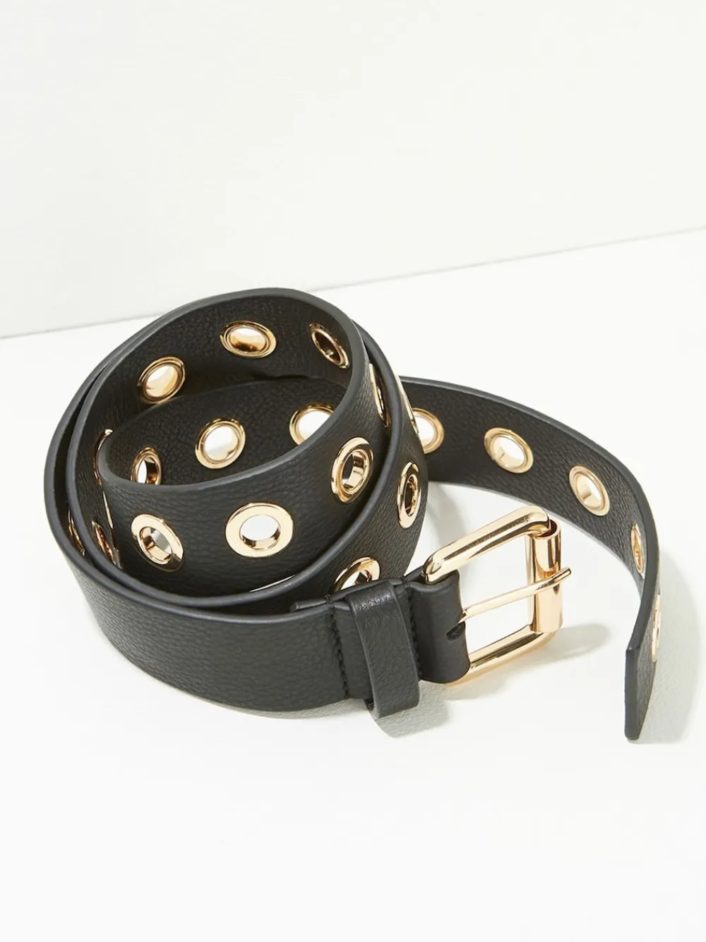 Als je twijfelt, doe het dan met een riem – dat is ons motto voor het nieuwe seizoen. Deze versie is gemaakt van getextureerd Zwart leer en is versierd met Goudkleurige oogjes voor een cool uitsparingeffect. De gesp is strak. – Perfect voor de relaxte Broeken in jouw garderobe. De maten van S/M zijn 71cm -81cm /30in -32in van de basis van de gesp tot de verstelgaten. M/L maten 85cm95cm /33.5in -37.5in van de base van de gesp tot aan de verstelgaten. 100% leer.