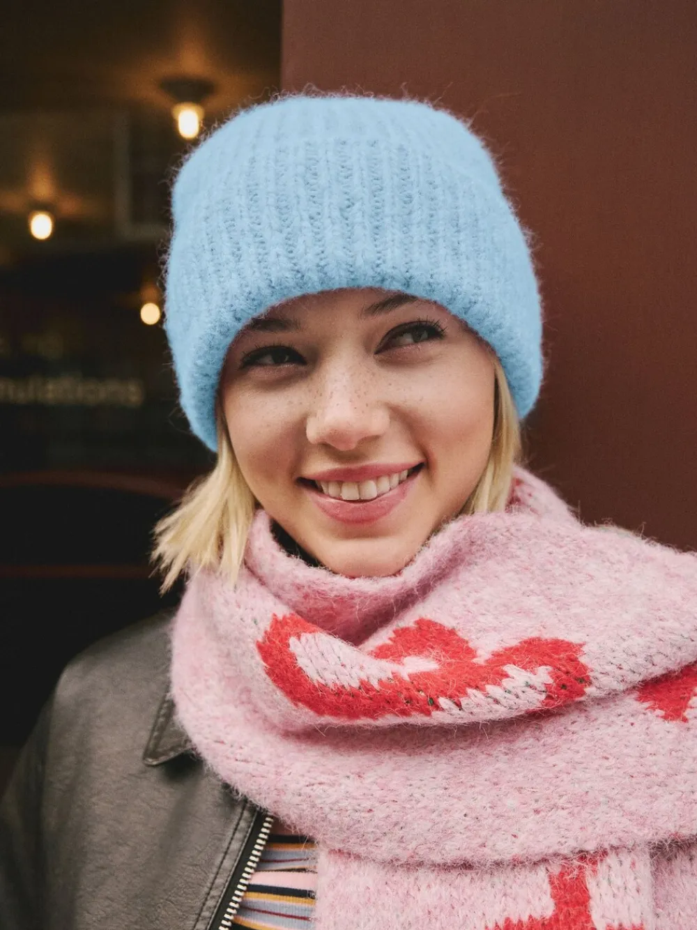 Lichtblauw – Geribbelde beanie-muts met wol*Next Discount