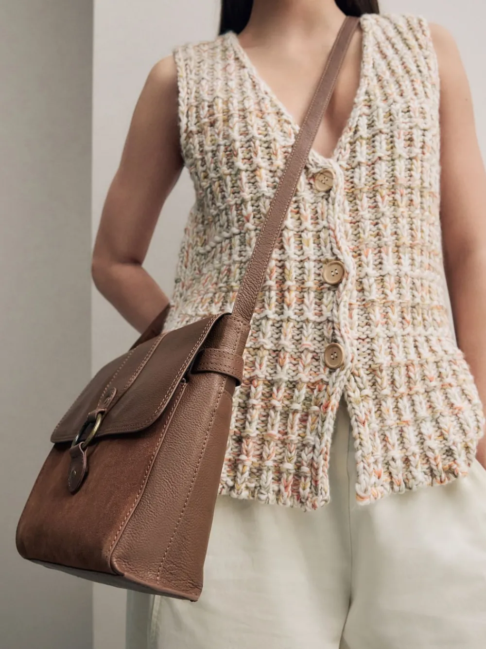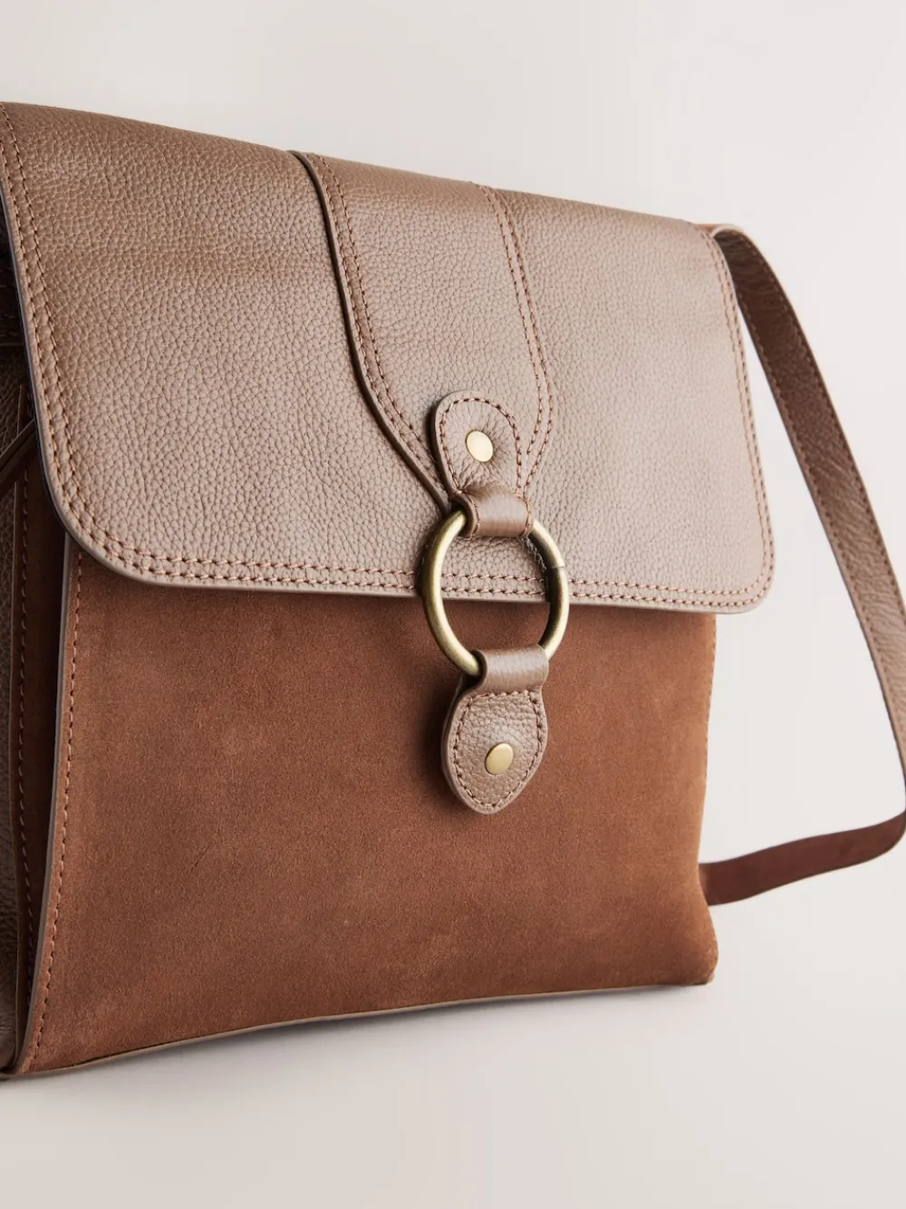 Lichtbruin – Leren messenger-tas met vak*Next Clearance