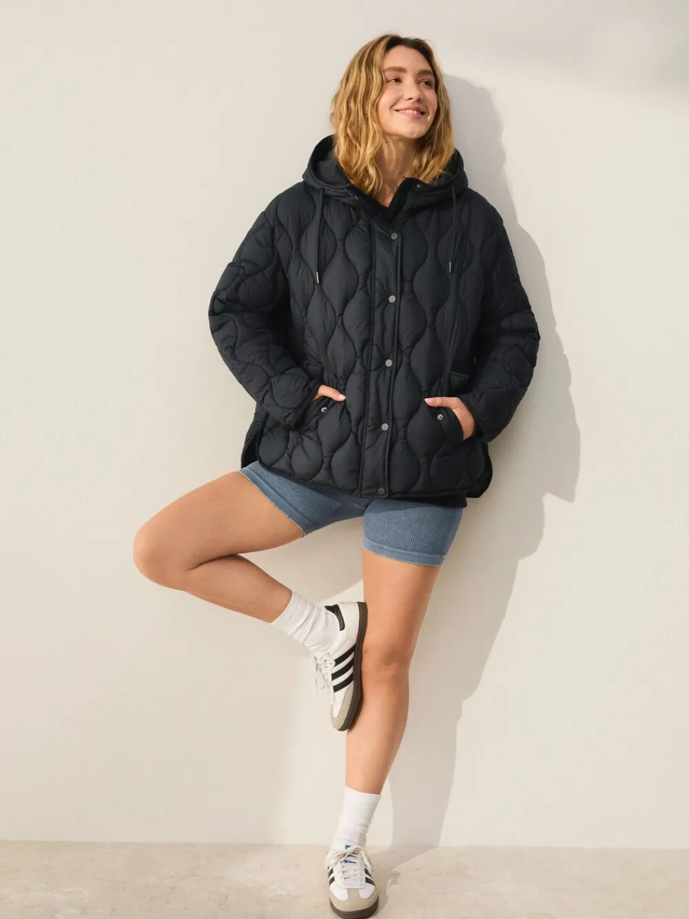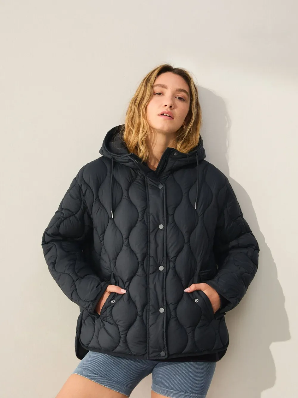 Stay warm and stylish with this black, lightweight quilted jacket, perfect for transitional autumn weather. The soft, padded design, and quilted texture provide both comfort and a fashionable touch. An essential layer that’s perfect for keeping warm on cooler days. Regular fit Lightweight quilted jacket Perfect for autumn and winter Padded design Standaard van het midden van de nek tot de zoom 28.5″ / 72 cm. Machinewasbaar. Hoofdbestanddeel 100% gerecycled polyester. Voering 100% gerecycled polyester. Vulling 100% gerecycled polyester.