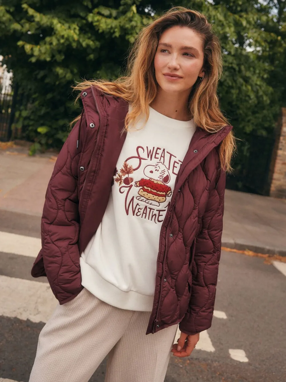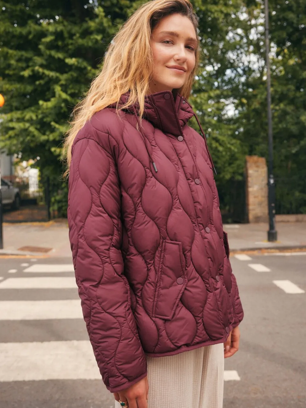 Stay warm and stylish with this berry-red, lightweight quilted jacket, perfect for transitional autumn weather. The soft, padded design, and quilted texture provide both comfort and a fashionable touch. An essential layer that’s perfect for keeping warm on cooler days. Lightweight quilted jacket Perfect for autumn and winter Padded design Standaard van het midden van de nek tot de zoom 28.5″ / 72 cm. Machinewasbaar. Hoofdbestanddeel 100% gerecycled polyester. Voering 100% gerecycled polyester. Vulling 100% gerecycled polyester.