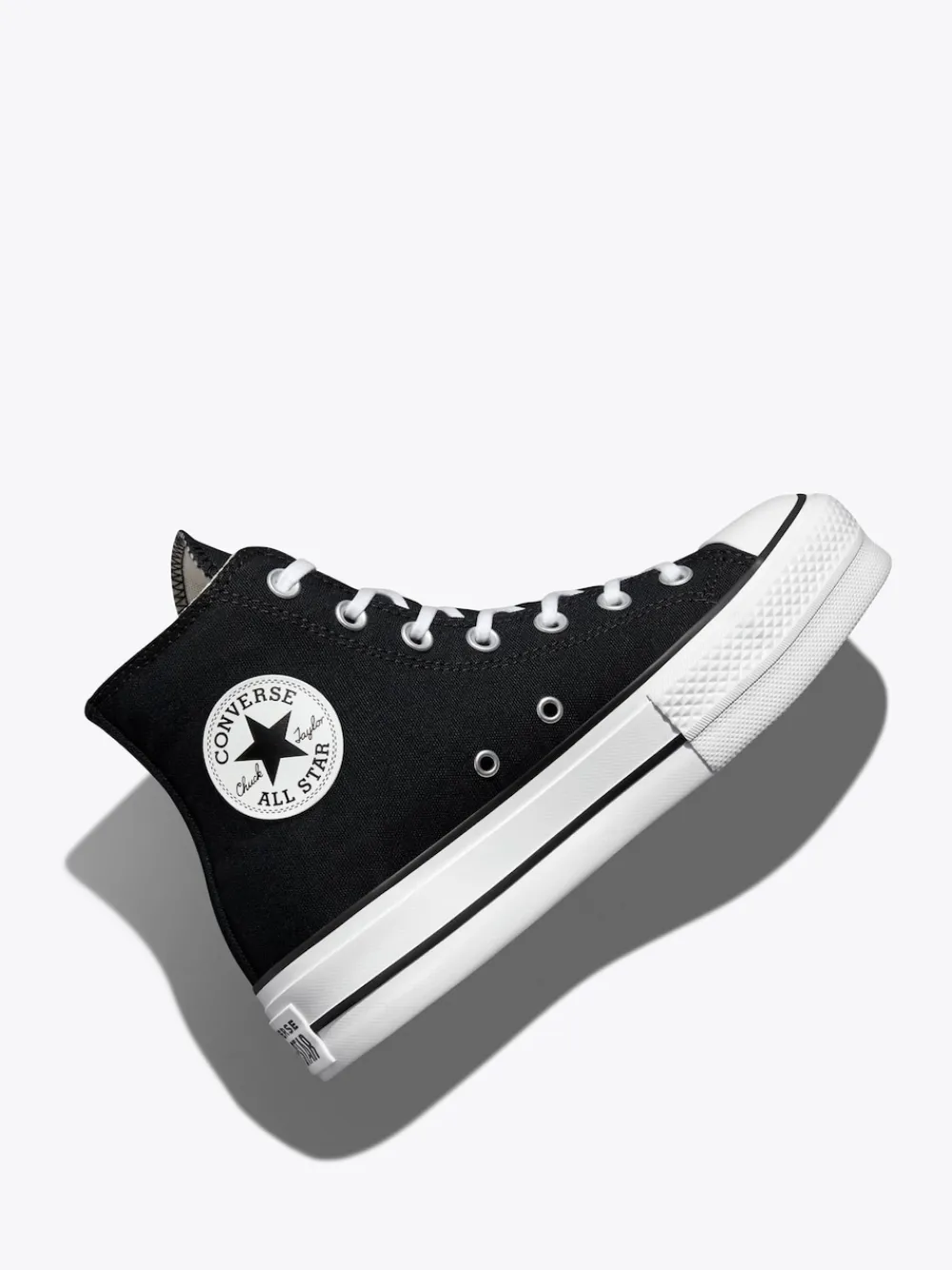 A double-stacked sole elevates the iconic, Black high-top look. New, optimistic colors bring a cheerful, spring-ready vibe, while unmistakable Chuck Taylor elements like the All Star ankle patch and contrast midsole stripes stay grounded in iconic style. High-top platform sneaker with poly-canvas upper, OrthoLite cushioning for all-day comfort. A platform sole ups the height. New Converse colors to refresh your rotation. Iconic Chuck Taylor. All-Star ankle patch. Canvas upper Double-stack sole All-Star design High-top look EVA cushioning Lace-up Adjustable fit Bovenwerk – textiel. Voering en voetbed – Textiel zool – Andere materialen.