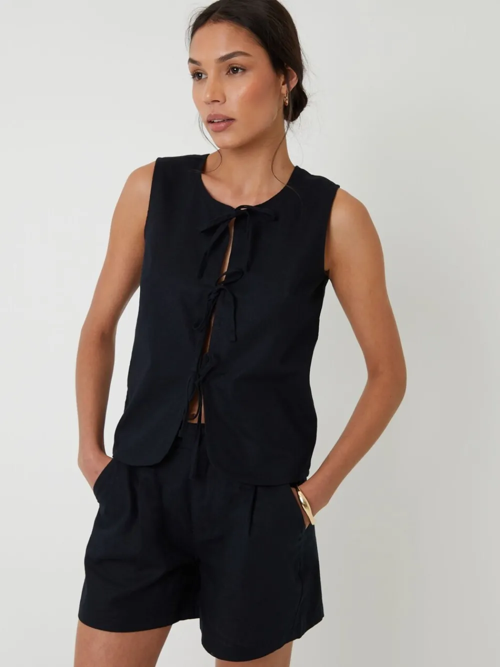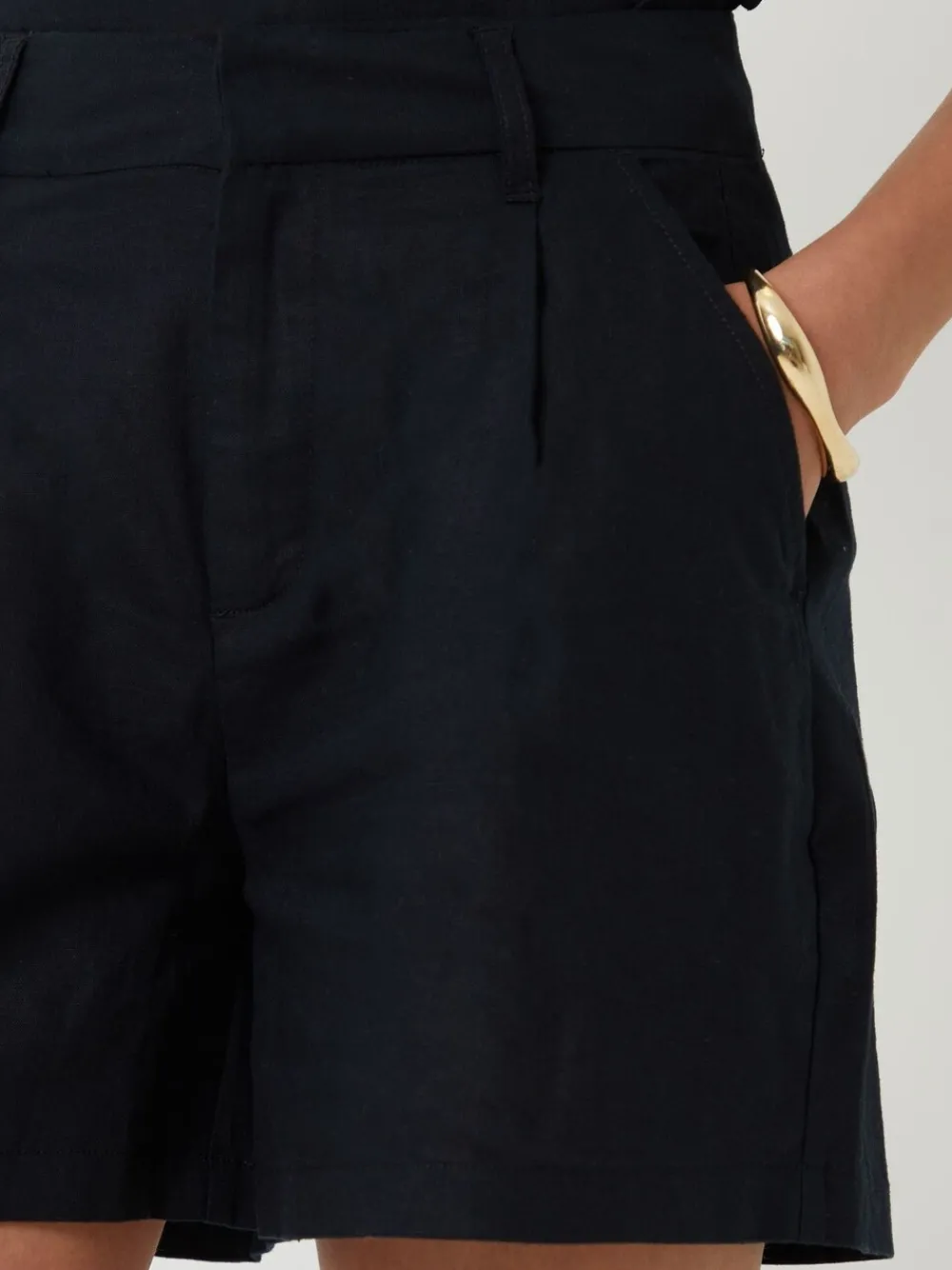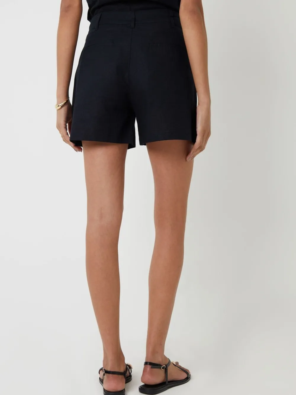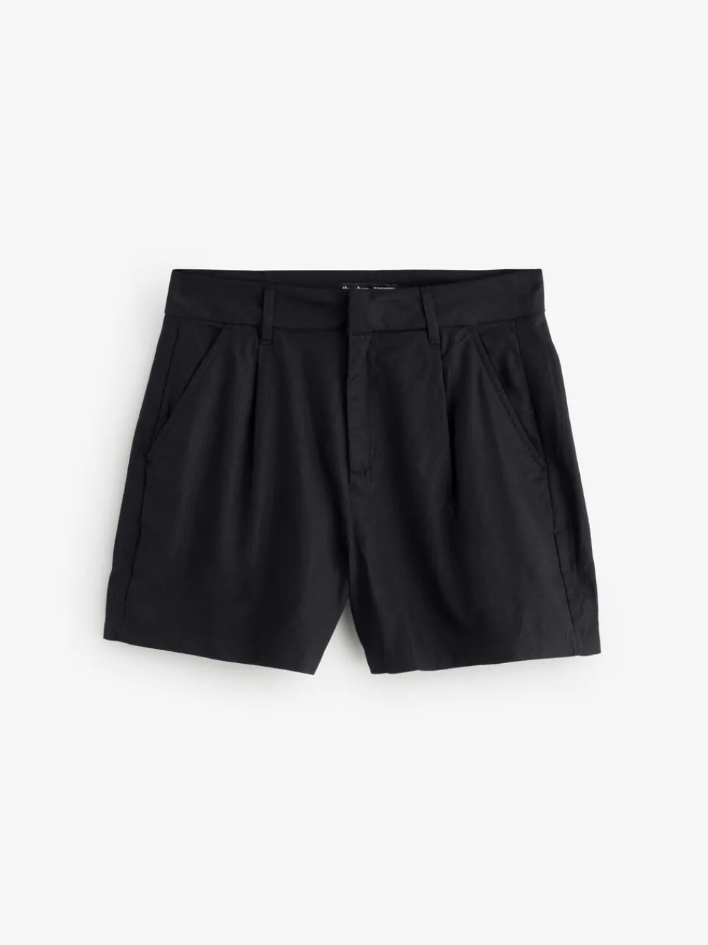 Maak je essentials compleet met onze shorts van linnenmix, het perfecte paar voor warmer weer. Deze shorts zijn voorzien van twee steekzakken, twee paspelzakken aan de achterkant en riemlussen. Ze zijn gemaakt van een ademende linnenmix, ideaal voor de zomer. Ze worden aan de voorkant gesloten met een ritssluiting en hebben een interne haak-en-oogsluiting aan de tailleband. Details op maat zoals plooien en coupenaden in de taille geven deze essentiële shorts een extra dimensie. Als je hem combineert met een blazer, kun je hem zowel overdag als ’s avonds dragen, of je nu naar een etentje gaat. Het model draagt maat 8(Verenigd Koninkrijk). Machinewasbaar. 55% Linnen, 45% katoen.