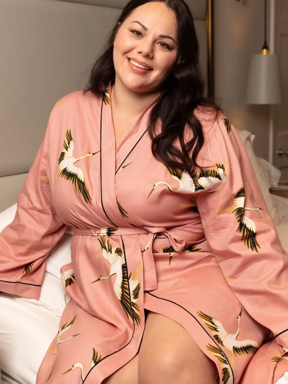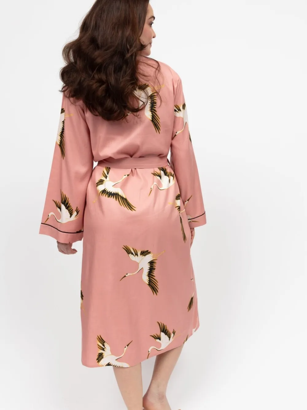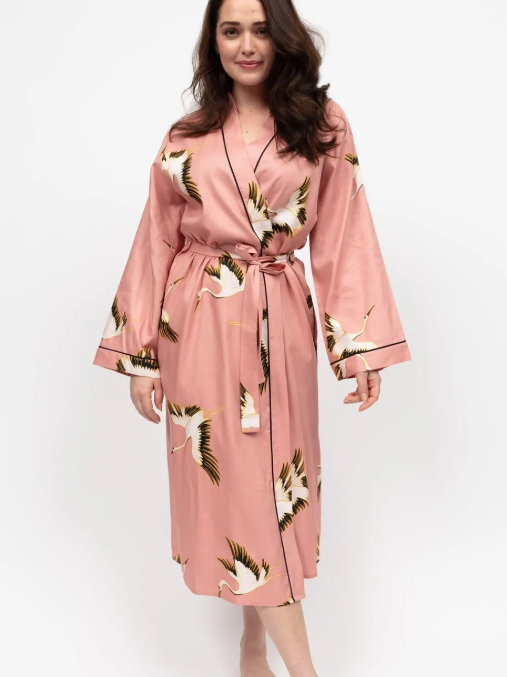 Creëer glamour bij het slapengaan met de lange Cyberjammies kamerjas met print. De bovenkant is afgezet met contrasterend modal. De kamerjas heeft een wikkelmodel in kimonostijl en wordt aan de voorkant gesloten met een riem van dezelfde stof. De kamerjas heeft twee zakken aan de zijkanten. Machinewasbaar. 60% katoen, 40% modal. Waarschuwing: weg houden bij vuur en vlammen.