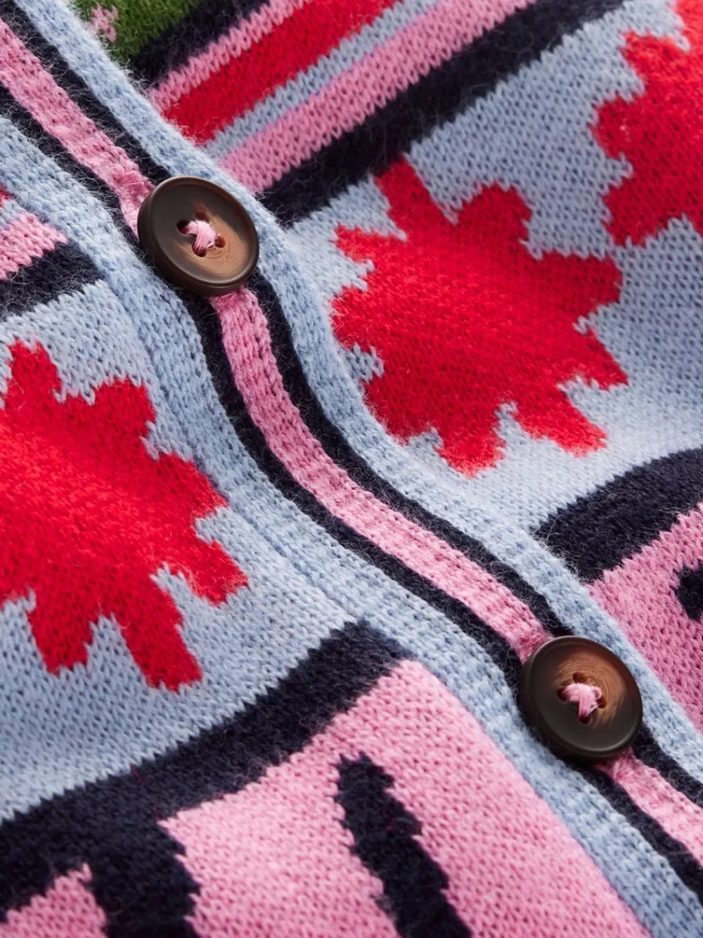 Cardigans are making a comeback and this longline jacquard style will become a mainstay in your wardrobe. The bold fun print is just us. Wait until everyone is saying how it looks made for you. Alleen chemisch reinigen. 50% katoen, 30% nylon, 20% wol.
