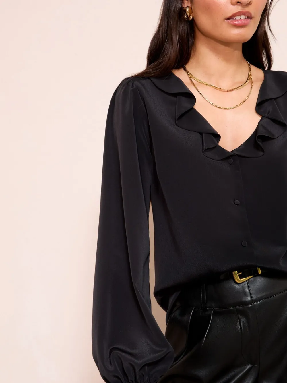 – Long Sleeve Button Front Ruffle Blouse*Friends Like These Clearance