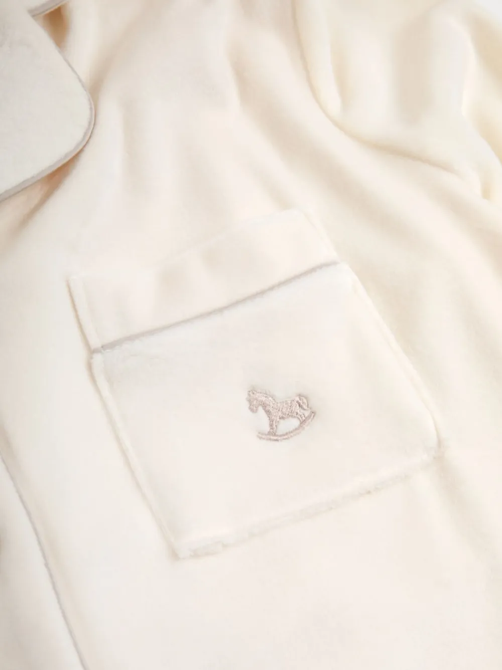 Deze zachte Pyjama’s van velours combineren luxe en comfort en zijn de perfecte aanvulling op je Loungewearcollectie dit seizoen. Dankzij de contrasterende biezen, de knoopsluiting aan de voorkant en de zachte, geborstelde binnenkant kunt u er zeker van zijn dat u stijlvol kunt ontspannen. Luxueus zacht aanvoelend velours. Contrasterende biezen. Reverskraag. Knoopsluiting aan de voorkant. Zachte geborstelde binnenkant. Zijzakken op de pyjamabroek. Geborduurd zakdetail. Broek met rechte pijpen. Bijpassende familieartikelen beschikbaar. Wasbaar in de wasmachine. 95% polyester, 5% elastaan. Waarschuwing: weg houden bij vuur en vlammen.