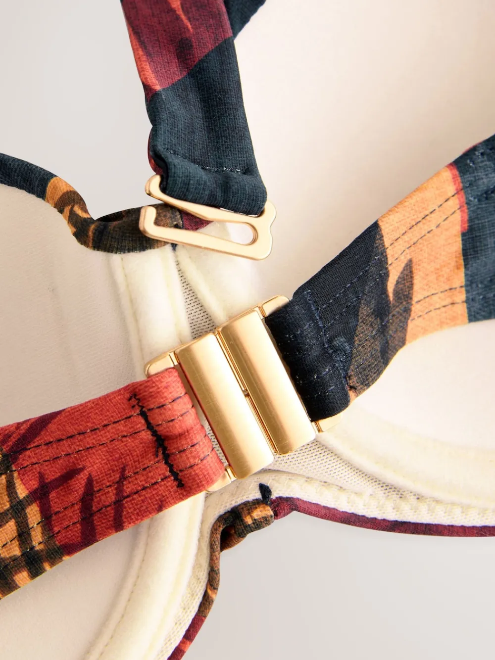 Wij zijn dol op de eenvoud van deze bandeau Bikini top. Het bandeaumodel heeft voorgevormde cups voor een vrouwelijke vorm en beugels voor een lichte lift. Gebruik de afneembare bandjes voor extra ondersteuning wanneer je die nodig hebt, of ga voor strapless om die vervelende Lichtbruin strepen te vermijden. Onze vormverbeterende bandeau-bikinitop is licht gevuld en biedt flatterende ondersteuning met afneembare bandjes. Koop je normale cupmaat voor een perfecte pasvorm. Verkrijgbaar in een breed scala aan Prints en kleuren, met verschillende Bikinibroekjes die bij de rug passen. Bandeau bikinitop Afneembare bandjes Beugelmodel Bijpassende broekjes verkrijgbaar Hoofdzakelijk 85% nylon, 15% LYCRA® XTRA LIFE™ elastaan. Mesh 88% nylon, 12% elastaan. LYCRA® XTRA LIFE™-vezel zorgt dat je ondergoed er langer als nieuw blijft uitzien met comfort- en pasvormbehoud. Dit innovatieve stretchmateriaal weegt weinig, ademt en behoudt zijn vorm bij telkens weer dragen en wassen. Deze stof voldoet aan BS EN 13758. – 1, zorgt voor bescherming tegen ultraviolette zonnestraling. Het is onafhankelijk getest en heeft een UPF-classificatie van 50+ gekregen, wat meer dan 97,5% van de UV-stralen blokkeert. Belangrijk advies: • Blootstelling aan de zon veroorzaakt huidbeschadiging • Alleen bedekte gebieden zijn beschermd • Gebruik altijd een zonnebrandcrème met een hoge beschermingsfactor voor gebieden van de huid die bloot worden gesteld aan de zon • De bescherming van deze stof kan worden verminderd bij gebruik of als het uitgerekt of nat is • Spoel altijd na elk gebruik af met zoet water • De stof biedt UVA- en UVB-bescherming tegen de zon.