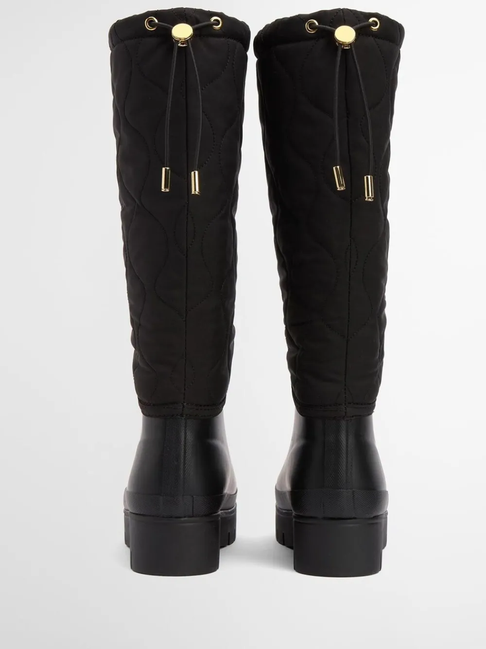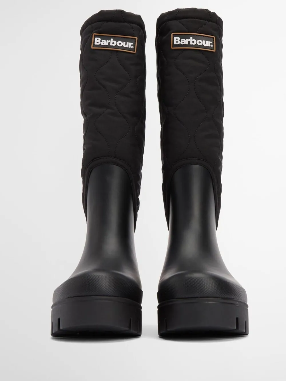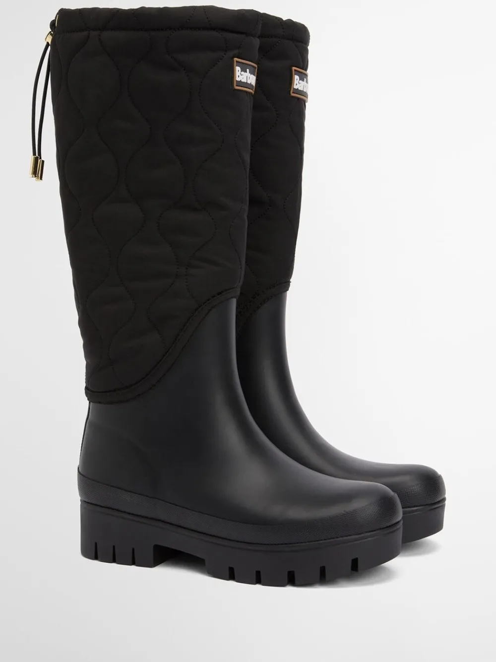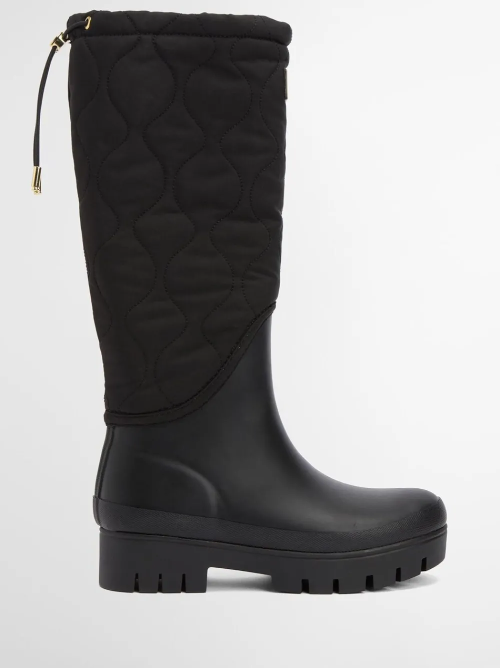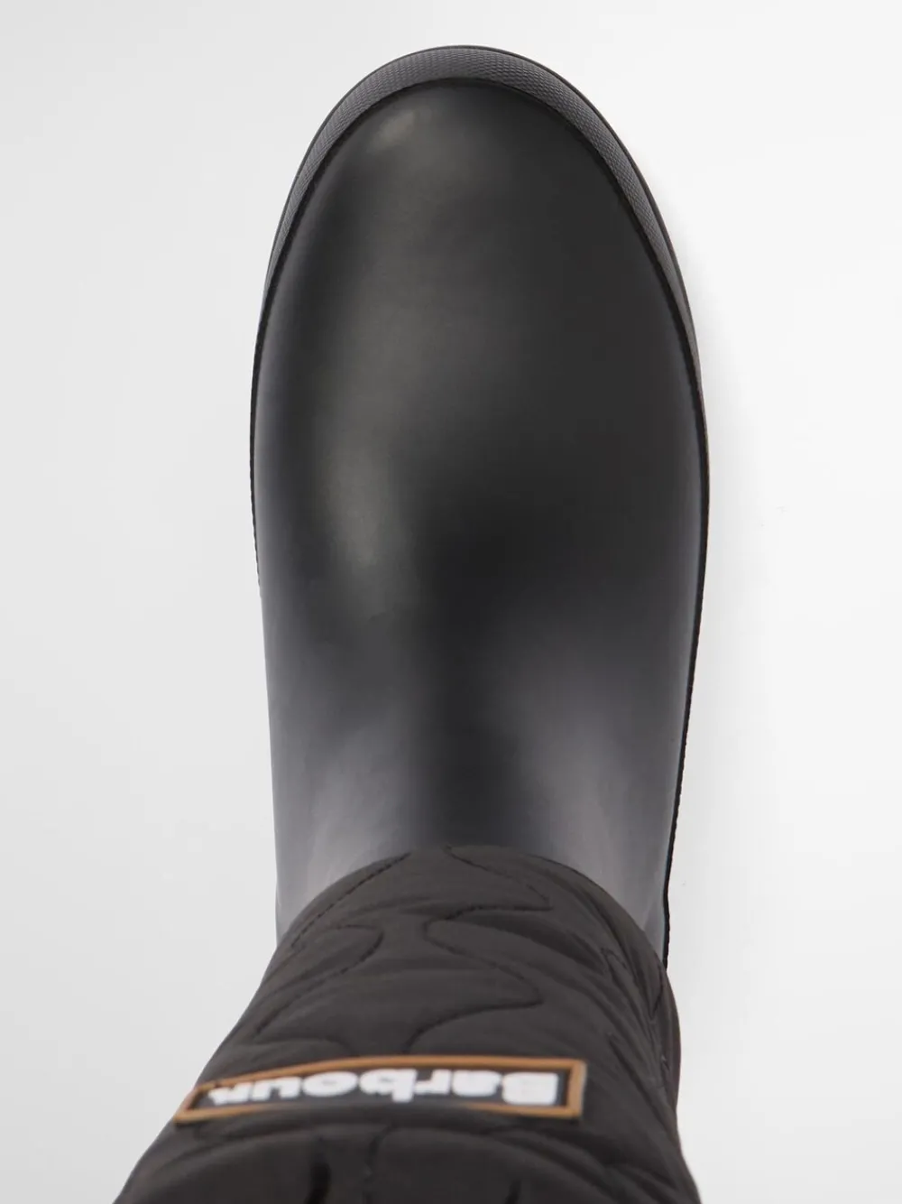 Tall rubber boots with quilted leg and chunky rubber sole. Features Barbour adjustable top and comfort lining. Bovenwerk – overige materialen. Voering en voetbed – Textiel.