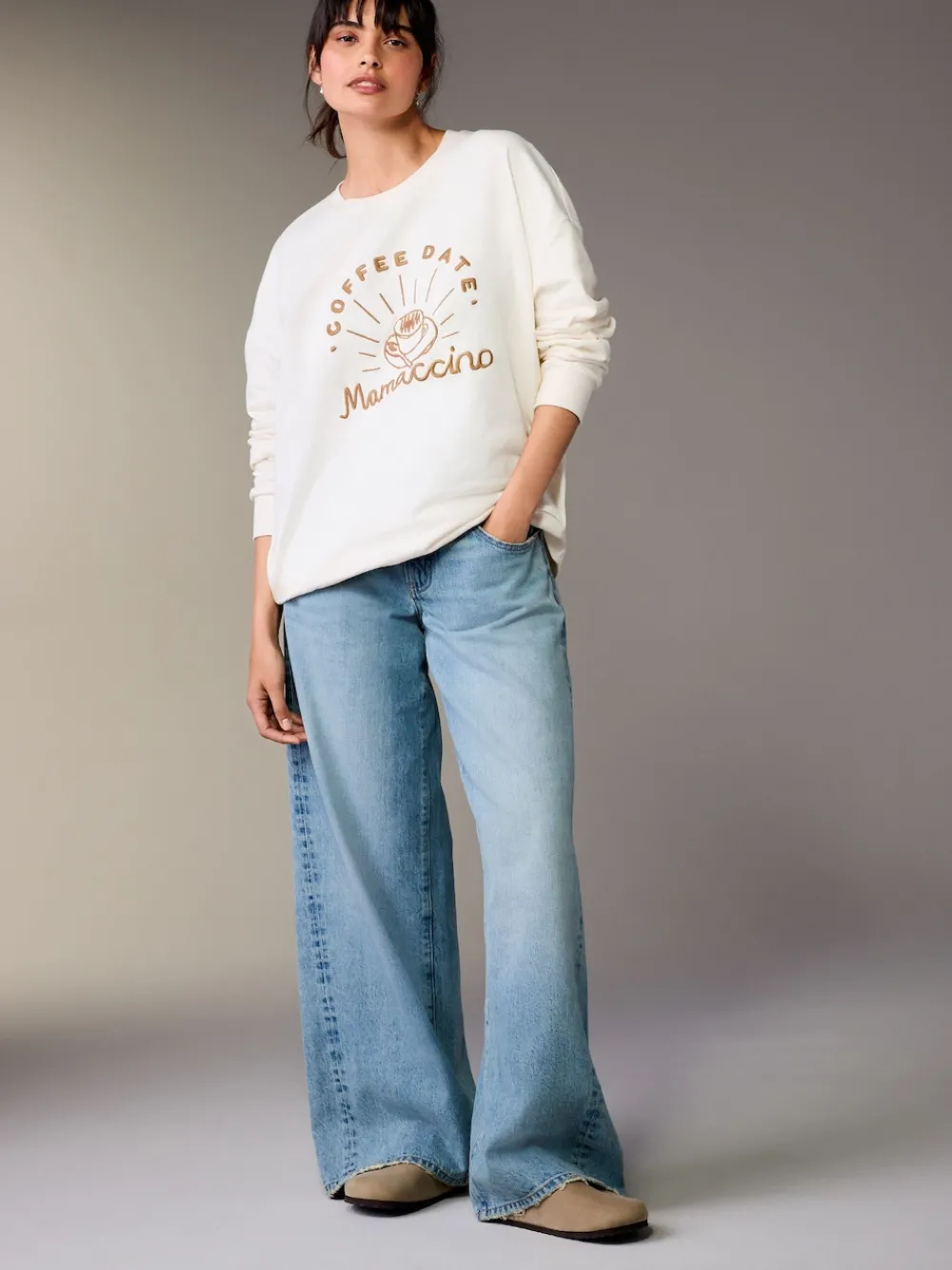 This adorable matching ‘Mama’ and ‘Babyccino’ sweatshirt set is perfect for stylish mother-and-child coordination. Crafted from pure cotton, both sweatshirts feature an embroidered coffee-themed graphic and classic crewnecks. The relaxed fit ‘Mama’ jumper and size 0-3 months ‘Mini’ jumper are finished with snug ribbed hems for comfort. 2-piece sweatshirt set Mama and Mini matching design Pure cotton fabric Embroidered chest graphic Crewneck collar Ribbed hem and cuffs Includes baby size 0-3 months Machinewasbaar. 2 x Jumper Shell 100% Cotton. Trim 94% Cotton, 6% Elastane.