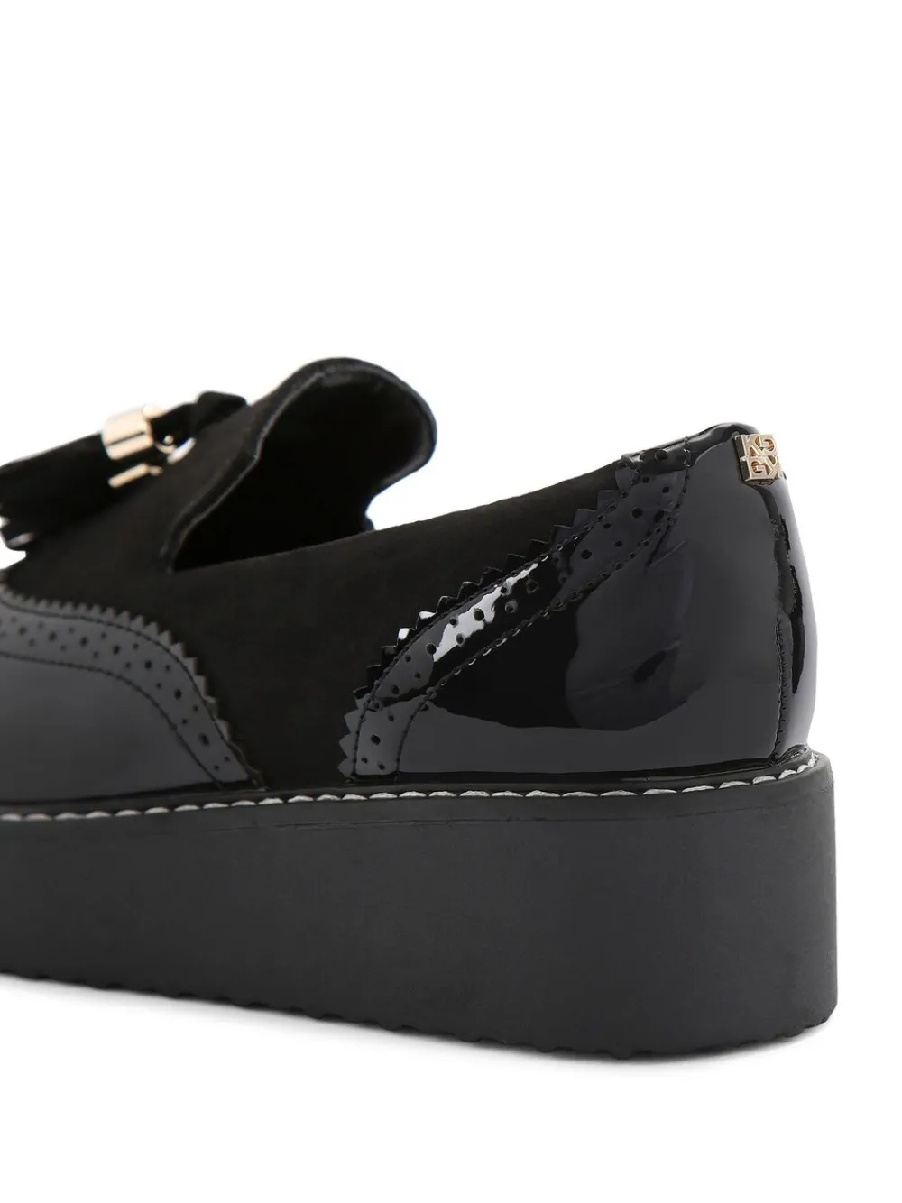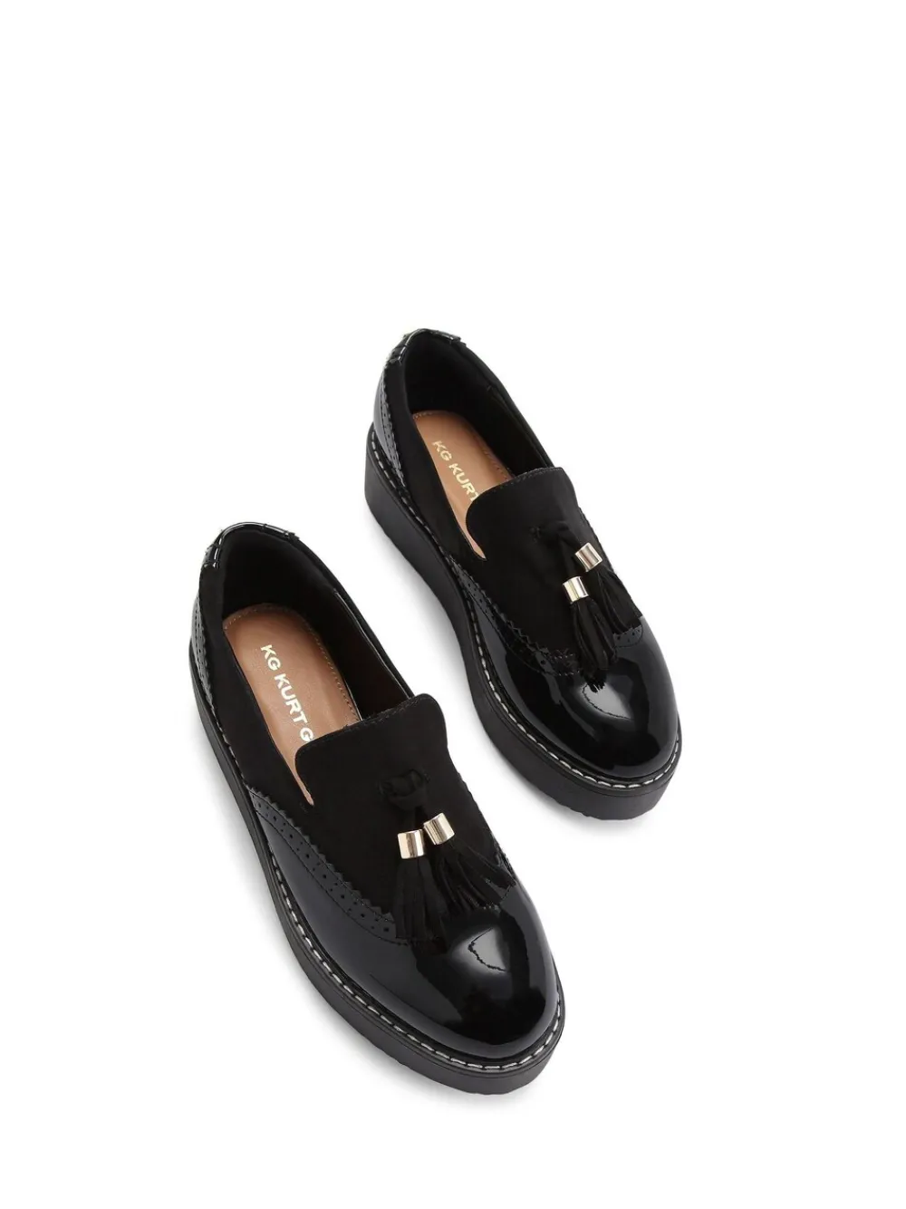 Deze KG Kurt Geiger More instapper heeft een moderne Lage schoenen stijl. Op de neus en hiel zit een lakdetail. Het voorpand is voorzien van kwastjes van microsuède. Hakhoogte 1,5 cm. Bovenwerk – 100% polyurethaan, voering. en sokken – 100% polycarbonaat. Zool – 100% rubber.