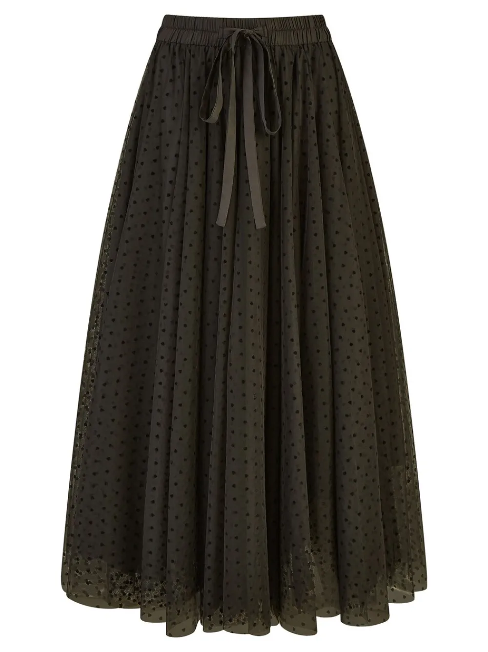 If elevated romantic style is your vibe for the new season, this is the perfect style for your wardrobe. This midi-length Black skirt boasts a flirty and mega feminine feel, made from luxurious tulle with a cute heart print. Style with a long-sleeved roll neck for the ultimate elegant look. We love this style for autumn weddings and special occasions. Feminine and romantic style for the new season Made from layers of tulle for swish and movement Midi length Perfect for special occasions Alleen met de hand wassen. Buitenkant: 100% polyester. Voering: 100% polyester.