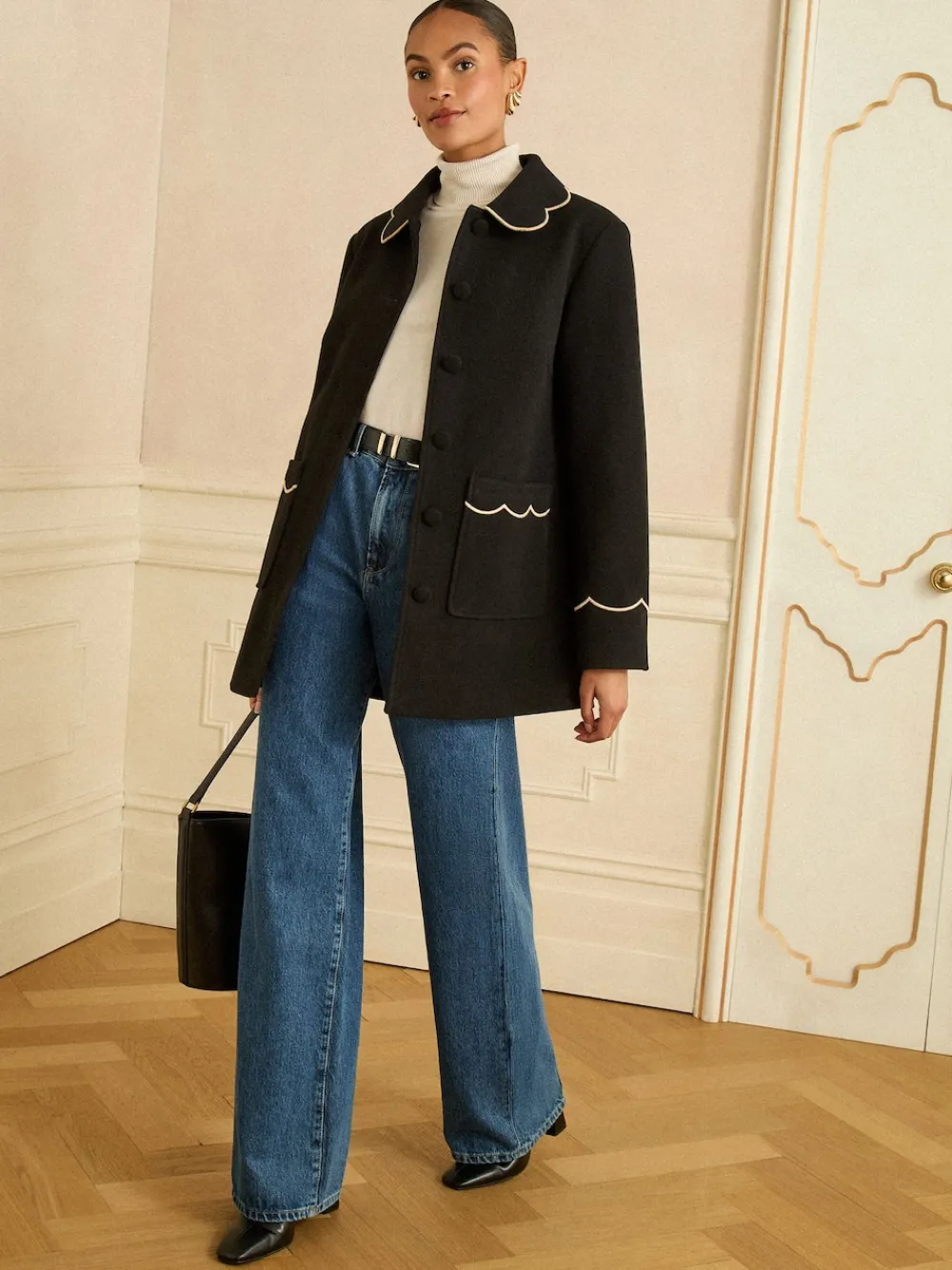 – Mid Length Scallop Trim Dolly Coat*Love & Roses Sale