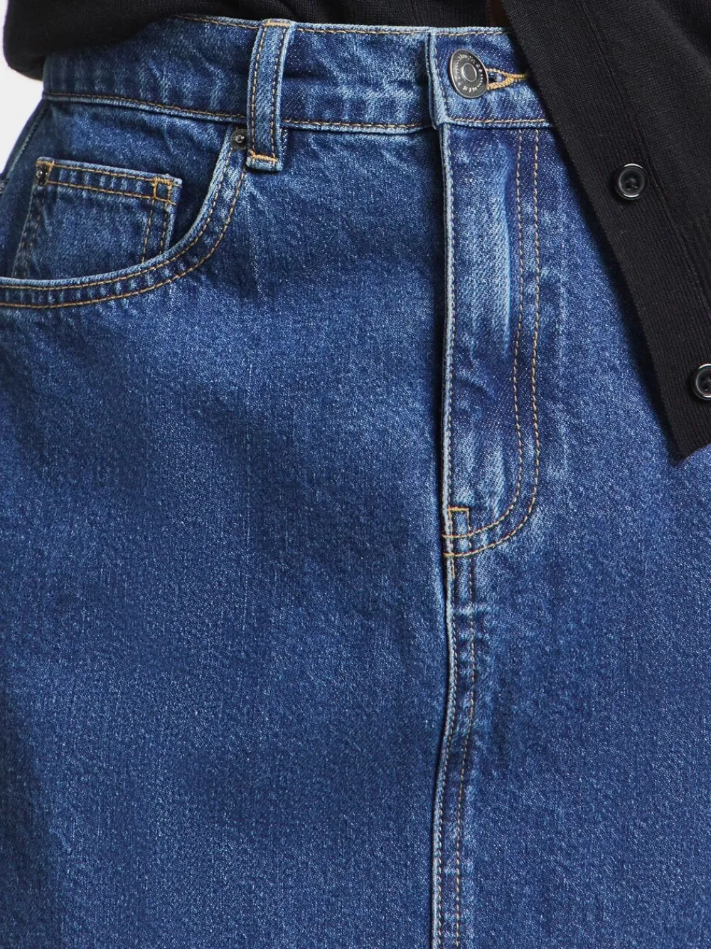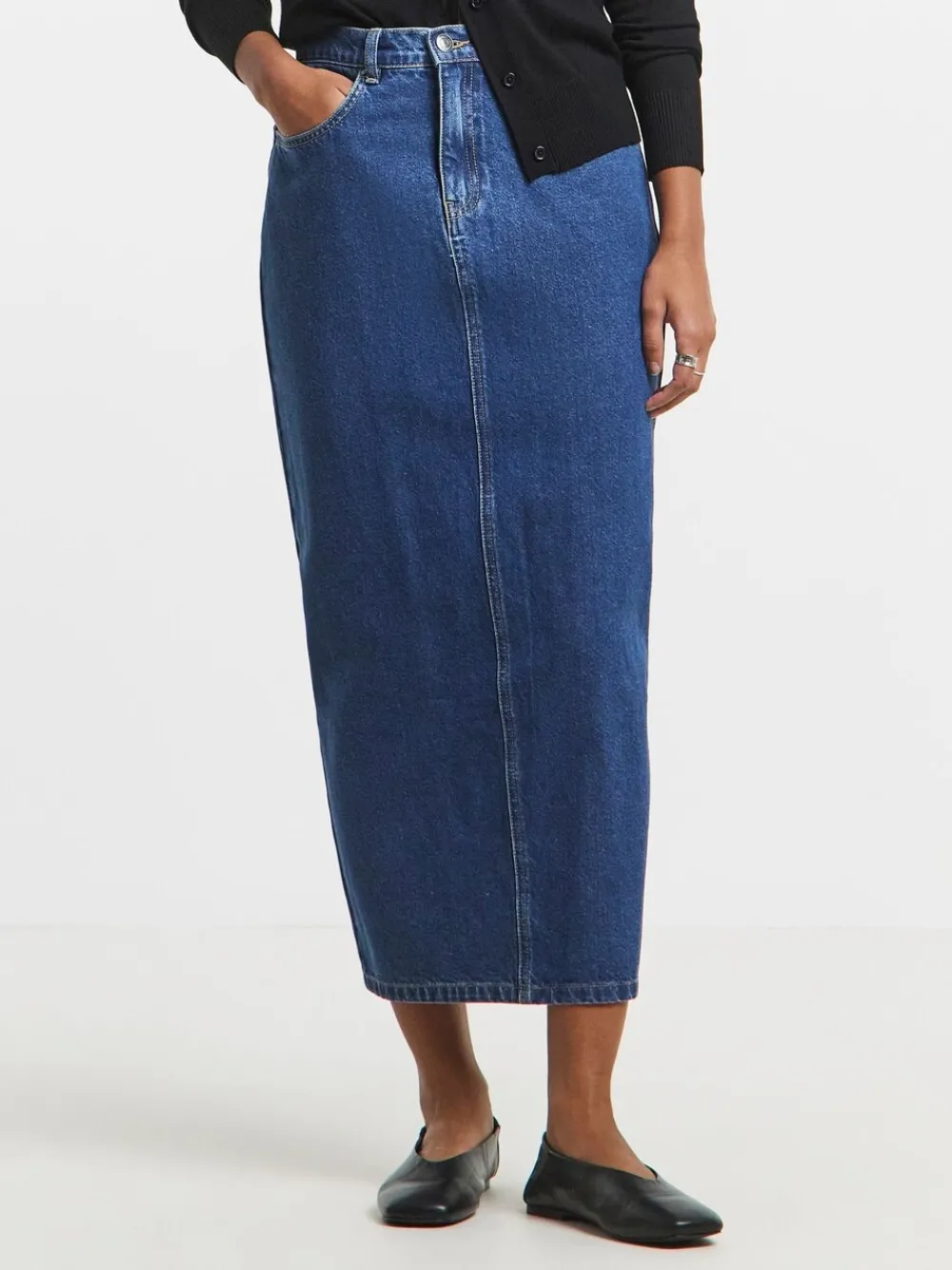 Our new Mid Wash Midaxi Skirt is the ultimate wardrobe staple- suitable for any daytime occasion! It features front and back pockets, a flirty back splity, belt loops, front button and zip fastening, silver hardware, a flattering midaxi length and a classic mid blue wash. Pair with a grapgic tee and trainers to complet the look. Standaard van tailleband tot zoom 36″ / 91,5 cm. Machinewasbaar. 100% katoen.