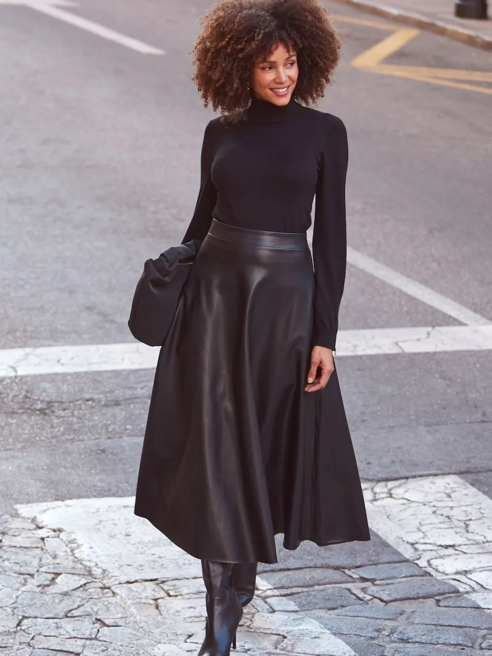 The one that ll have everyone asking ‘where did you get that?’, our faux leather looks so luxe, sits high on the waist for an ultra-flattering fit, full midi style creates a gorgeous silhouette, pair with a polo neck and ankle boots for the office, add a nice top and heels for drinks and dinner Alleen met de hand wassen. Main 100% Polyurethane. Base 91% Polyester, 9% Elastane.