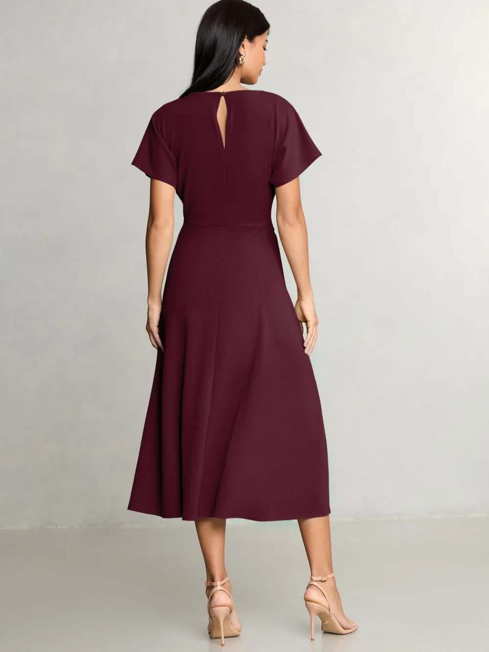A gorgeous Knot Side Midi Dress by Lipsy. Featuring short sleeve, midi length, knot side detail, rounded neckline. A perfect addition to your workwear wardrobe. Model wears size 8. Hoofdbestanddeel 97% polyester, 3% elastaan. Voering 100% polyester.