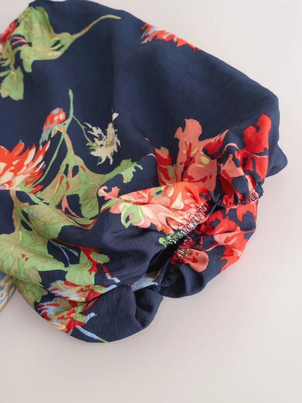 | Color | Marineblauw met bloemenprint |