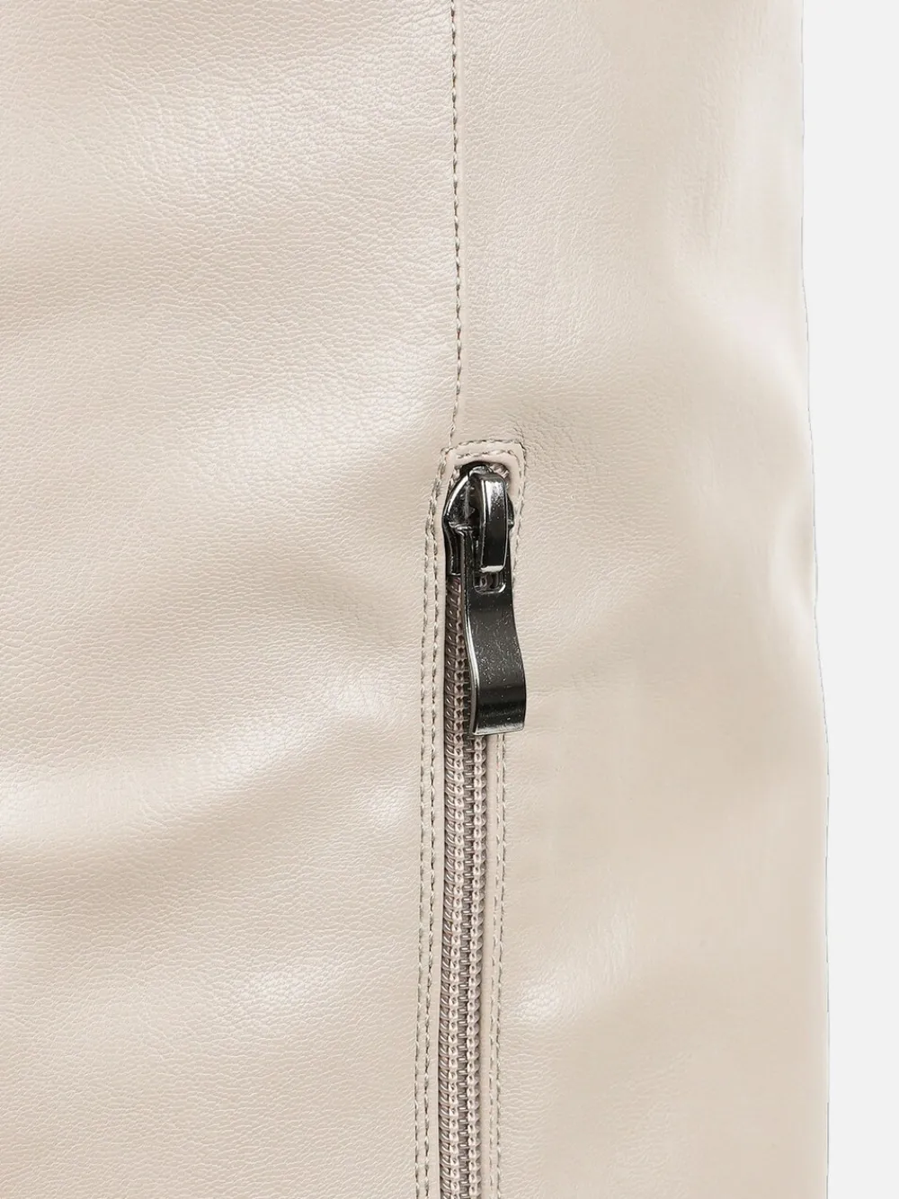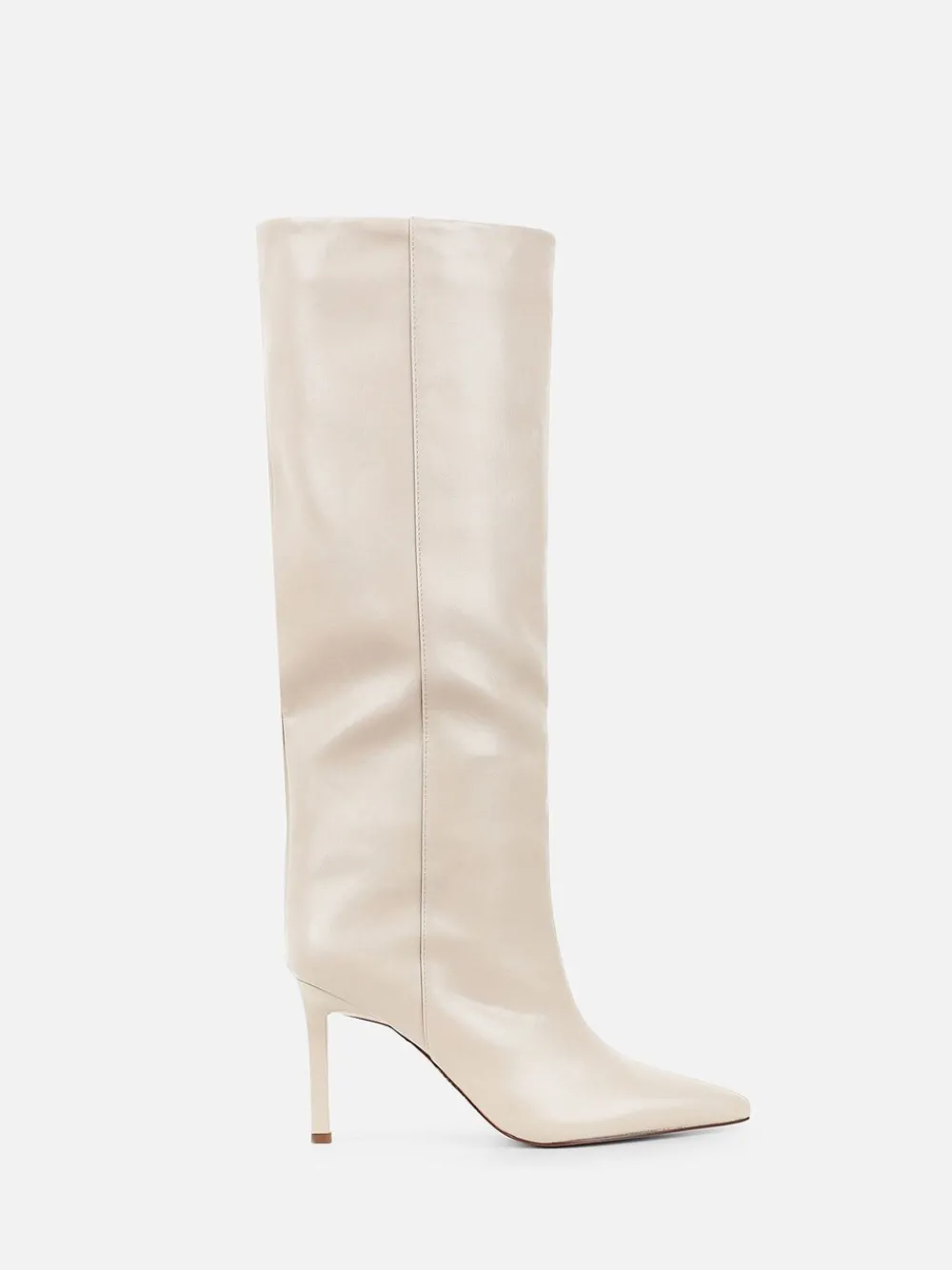 Step up your wardrobe staples with these dreamy mushroom knee-high boots, finished with a sleek pointed toe and chic stiletto heel. With a smooth faux leather design and easy side zip, they’re made to take you from day to night. The ultimate staple you’ll reach for again and again, perfect with dresses, jeans or skirts for that timeless vibe. Hakhoogte 9,5 cm. Bovenwerk – 100% andere vezels, Voering. en sokken – 100% overige vezels. Zool – 100% rubber.