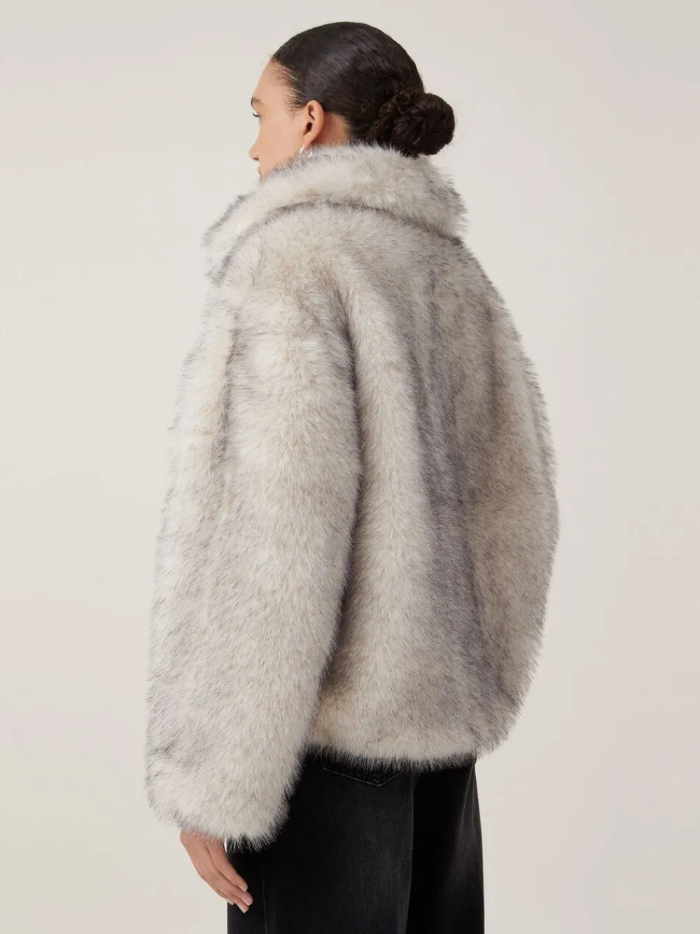Straight fit body. Oversized collar. Straight fit sleeve with no cuff. Drop shoulder. In seam pockets at side seams. Regular length. 4 x fabric hook and eye closure at centre front of jacket. Fully lined. Machinewasbaar. Hoofdbestanddeel 100% polyester. Voering 100% polyester.