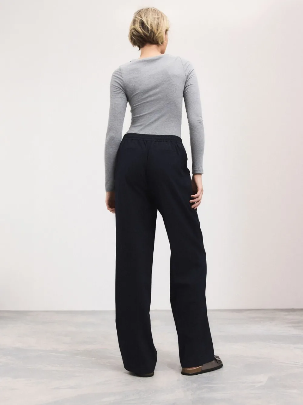 Designed for the everyday, our wide leg tailored trousers are a versatile addition to your work wardrobe. These mid-rise trousers feature a flattering wide leg silhouette and are crafted from a comfortable stretch fabric with an elastic back waistband, ensuring both style and ease of movement throughout your workday. Elastic back Wide leg Matching blazer available Short voor binnenbeenlengte 27″ / 69cm. Regular voor binnenbeenlengte 29″ / 74cm. Lang genoeg voor binnenbeenlengte 31″ / 79cm. XL Tall voor binnenbeenlengte 33″ / 84cm. XXL Tall voor binnenbeenlengte 35″/ 89cm. Machinewasbaar. 66% gerecycled polyester, 25% viscose, 7% wol, 2% elastaan. Artikelen met het curve-logo zijn verkrijgbaar in de maten 18 en groter. Onze tall collectie is ontworpen om te passen bij vrouwen van 5’10” en langer. Dit is verhoudingsgewijs vergroot door het lichaam, de benen en de mouwen om de perfecte pasvorm te bereiken. Verkrijgbaar in maat 8-20.