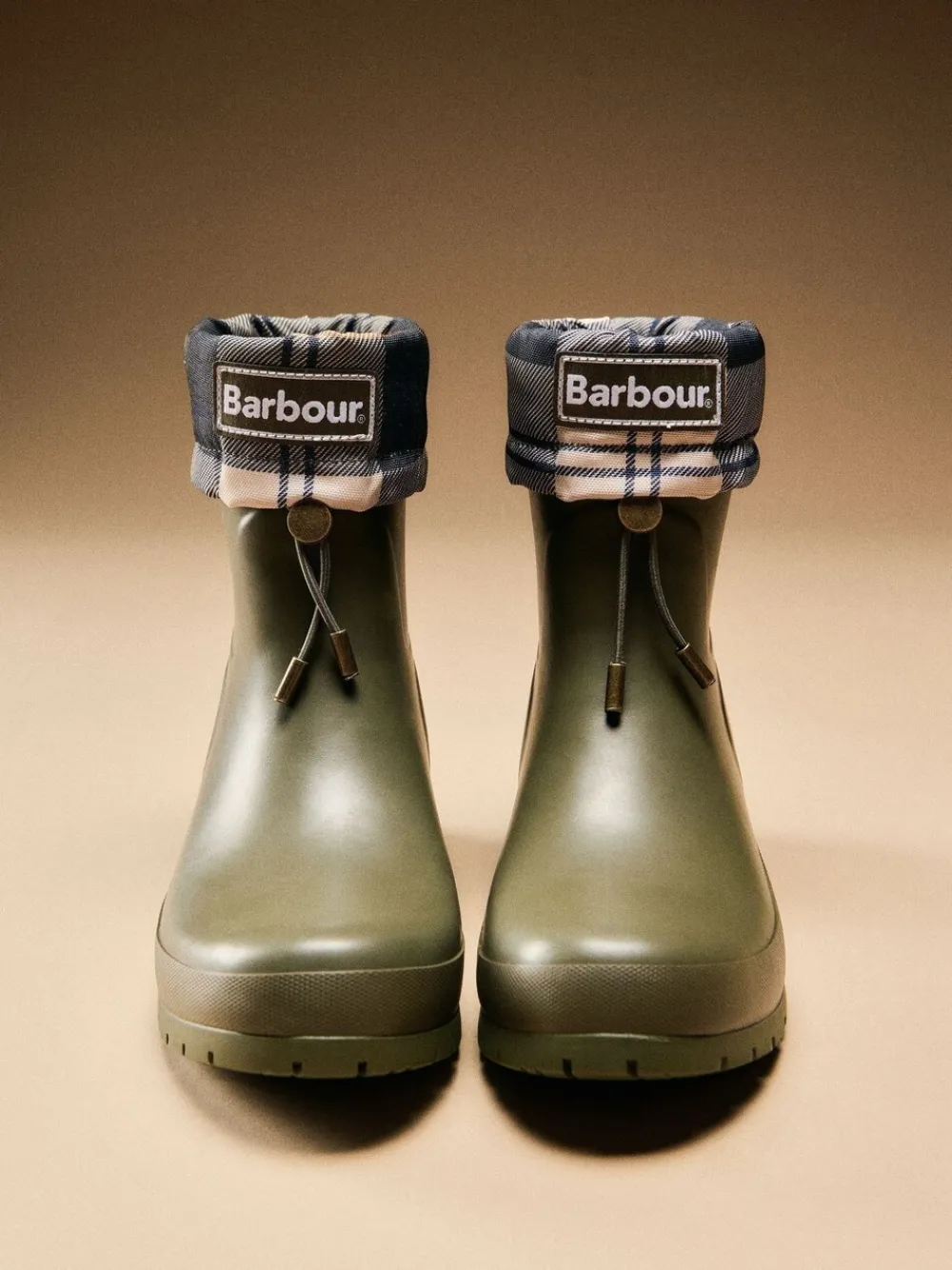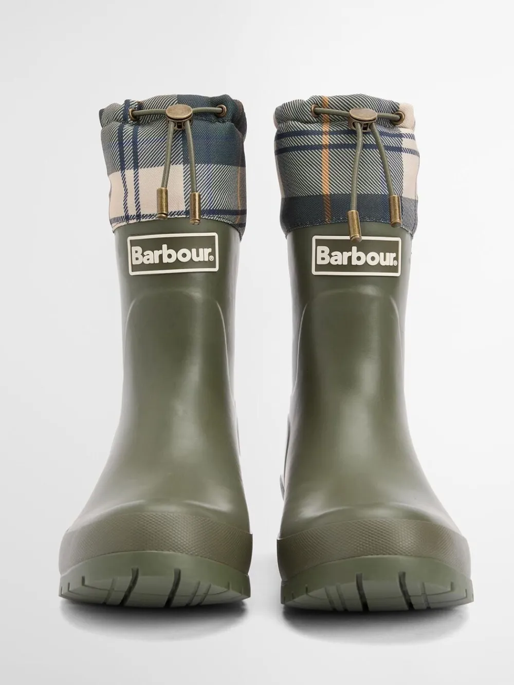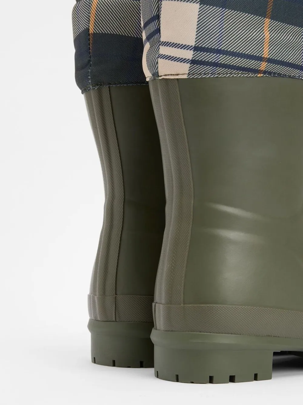 Turn down top mid height rubber boot with rubber sole.with rubber sole. with rubber sole. Features dual branded leg, Features dual branded leg and adjustable top line toggle with ancient tartan. Bovenwerk – overige materialen. Voering en voetbed – Textiel.
