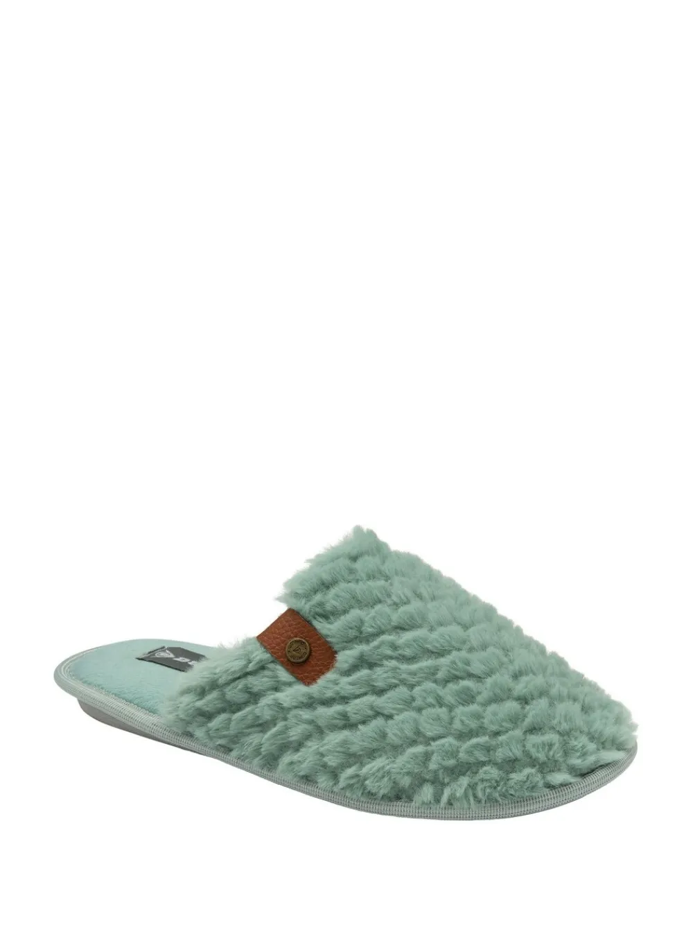 Supercomfortabele pantoffels met wafelstof-bontmotief voor dames met een traagschuimzool voor extra comfort. Hoofdbestanddeel – 100% textiel. Voering – 100% textiel. Zool – 100% andere vezels.
