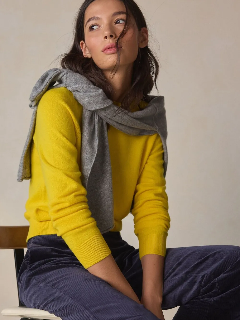 An everyday luxury, this 100% cashmere yellow jumper is a timeless wardrobe staple. The super soft fabric and classic crew neck make it an effortless choice for layering on cooler days or for a sophisticated, casual look. 100% cashmere Crew neckline Ribbed cuffs and hem Super soft fabric Alleen met de hand wassen. 100% kasjmier.