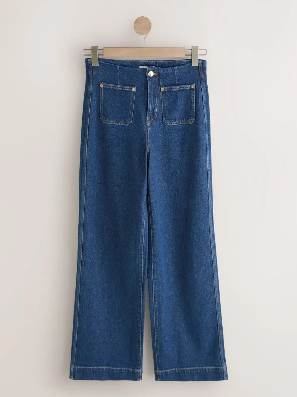 Update your denim collection with these high-rise wide leg jeans. Crafted from Comfort stretch denim, their relaxed fit and full-length cut create a timeless silhouette, while the gold-toned button details add a chic finish to your casual look. High rise Relaxed wide leg fit Full length Patch pockets Comfort stretch denim Gold button details Short voor binnenbeenlengte 27″ / 69cm. Regular voor binnenbeenlengte 29″ / 74cm. Lang genoeg voor binnenbeenlengte 31″ / 79cm. XL Tall voor binnenbeenlengte 33″ / 84cm. XXL Tall voor binnenbeenlengte 35″/ 89cm. Machinewasbaar. 99% Katoen, 1% elastaan. Artikelen met het curve-logo zijn verkrijgbaar in de maten 18 en groter. Onze tall collectie is ontworpen om te passen bij vrouwen van 5’10” en langer. Dit is verhoudingsgewijs vergroot door het lichaam, de benen en de mouwen om de perfecte pasvorm te bereiken. Verkrijgbaar in maat 8-20.