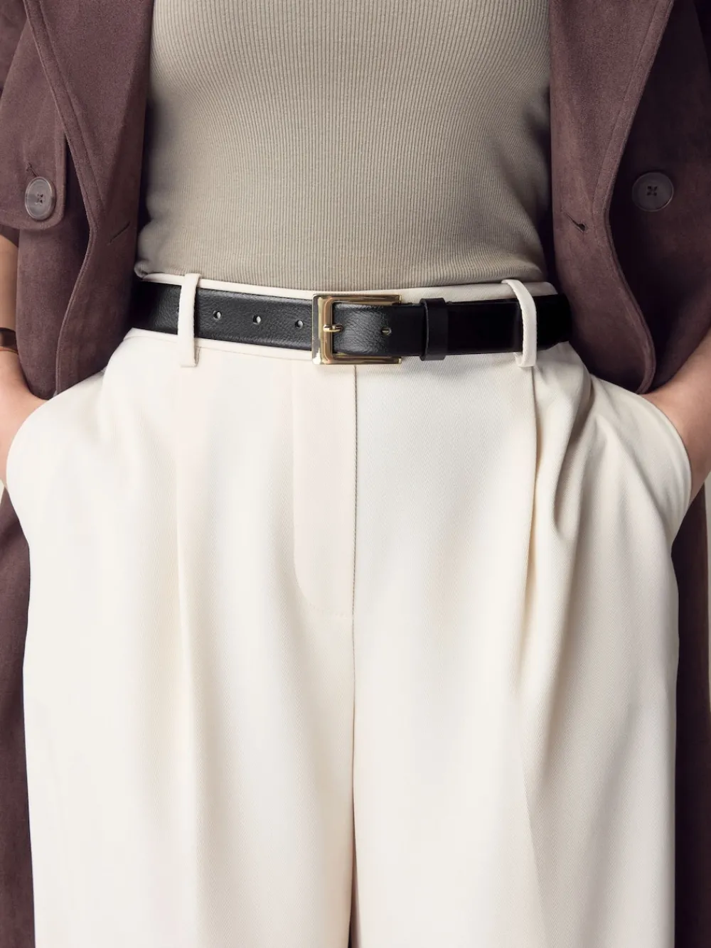 Add a touch of polished style to your outfits with this leather belt, expertly handmade in Italy. The classic shape and regular width provide a timeless feel, while the sleek hardware adds a modern touch. It is a versatile accessory that can be worn with jeans or cinched over a dress. Regular width Metallic hardware Handmade in Italy Leather material Adjustable fit 100% leer.
