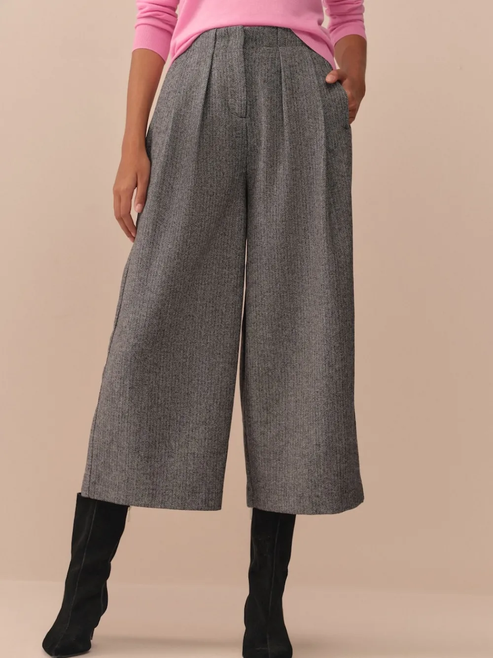 These Herringbone Culottes redefine cold-weather tailoring with understated luxury. Crafted with a rich herringbone fabric featuring wool, their flattering calf-length culotte shape and smart waistband offer modern sophistication. Perfect with boots and a cosy jumper, they feature practical side pockets and ensure a truly less ordinary aesthetic for elevated everyday wear. Herringbone fabric with wool Flattering calf-length culotte shape Smart waistband detail Practical side pockets Perfect for wearing with boots Short voor binnenbeenlengte 27″ / 69cm. Regular voor binnenbeenlengte 29″ / 74cm. Lang genoeg voor binnenbeenlengte 31″ / 79cm. XL Tall voor binnenbeenlengte 33″ / 84cm. Machinewasbaar. 50% Recycled polyester, 17% Acrylic, 12% Polyester, 12% Wool, 5% Nylon, 3% Viscose, 1% Cotton. Artikelen met het curve-logo zijn verkrijgbaar in de maten 18 en groter. Onze tall collectie is ontworpen om te passen bij vrouwen van 5’10” en langer. Dit is verhoudingsgewijs vergroot door het lichaam, de benen en de mouwen om de perfecte pasvorm te bereiken. Verkrijgbaar in maat 8-20.