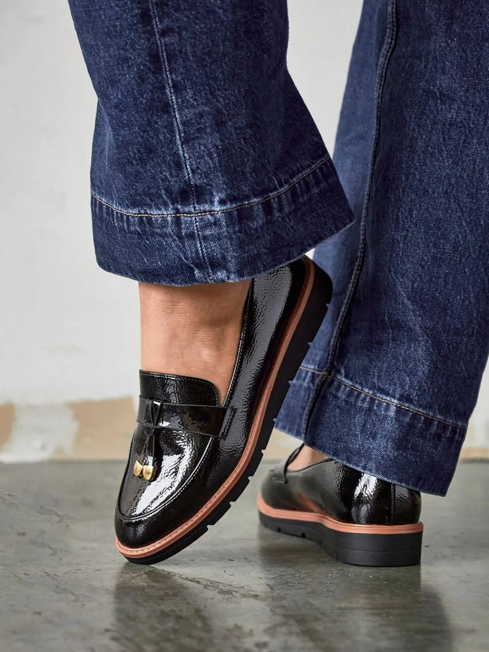 Classic, comfortable, and effortlessly stylish. Perfect for adding a touch of sophistication to any outfit with its timeless black patent finish and charming tassel detail. Made with a cushioned in-sock for all-day comfort. Bovenwerk – Andere materialen, voering en sok – overige materialen, zool – Andere materialen.