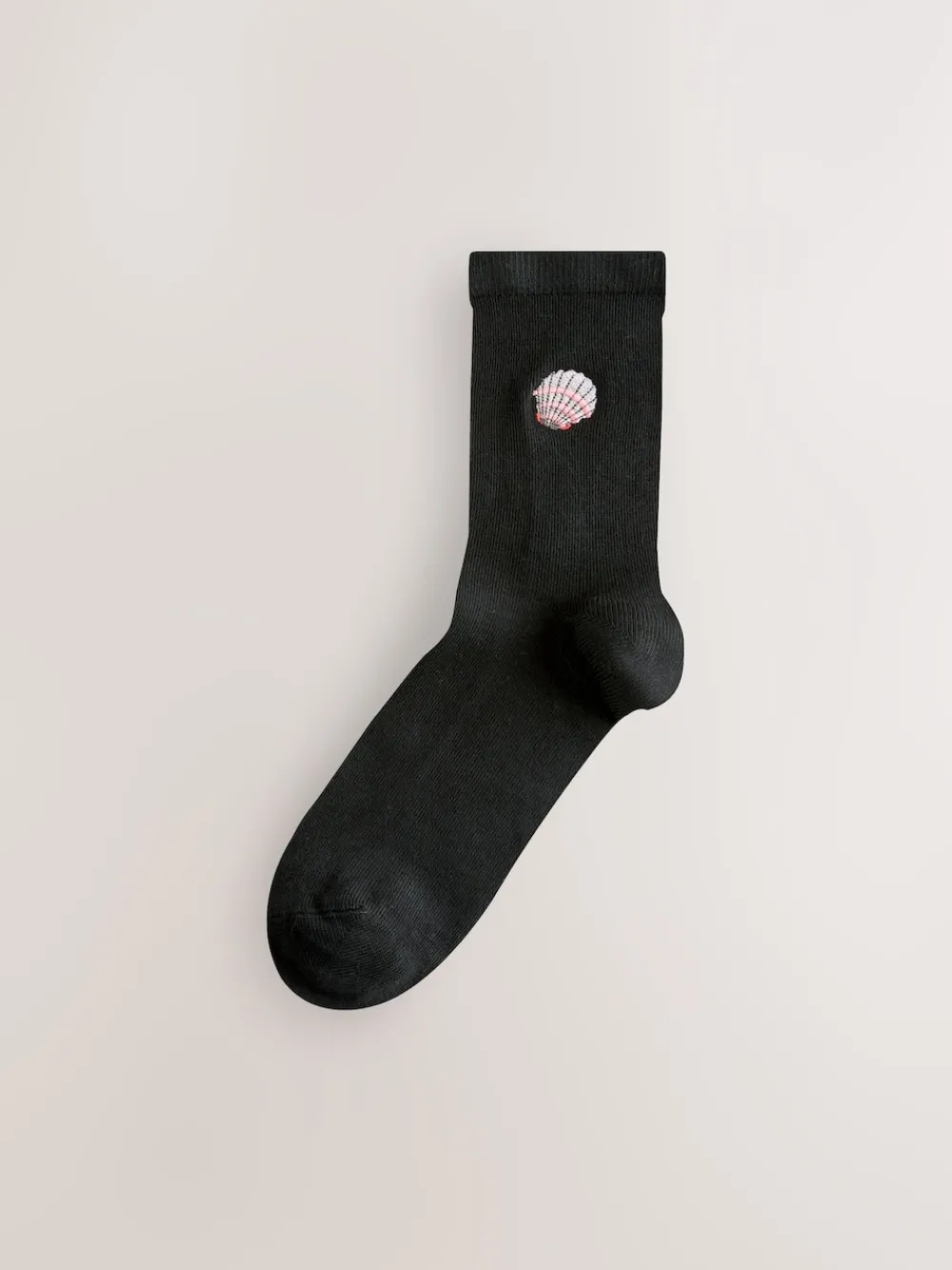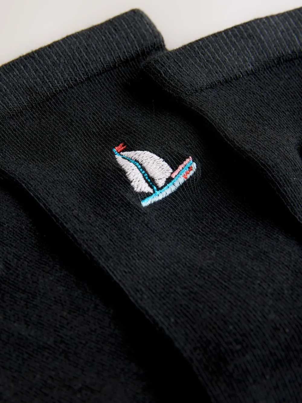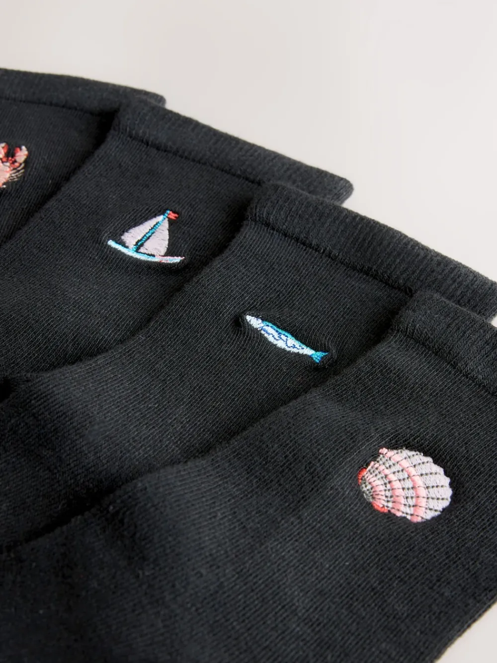 Nautische Vissersprint – Set van 4 paar enkelsokken met geborduurd motief*Next New