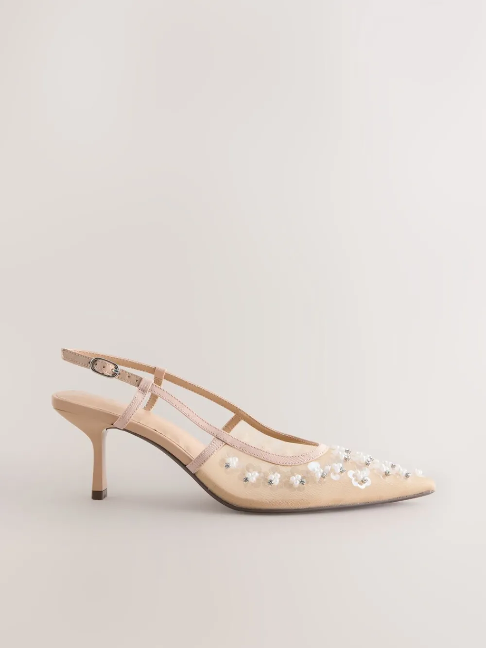Step into sophistication with these stunning slingback heels. Crafted with breathable mesh and adorned with elegant embellishment, they feature a chic pointed toe and low heel. Built with our superior Forever Comfort® padding, they ensure elegance and easy wearability for special occasions or evening dressing. Forever Comfort® padded insole Pointed toe slingback heel Mesh upper with embellishment Low heel height Bovenwerk – textiel, overige materialen; voering en voetbed – Andere materialen, textiel, zool – Andere materialen.
