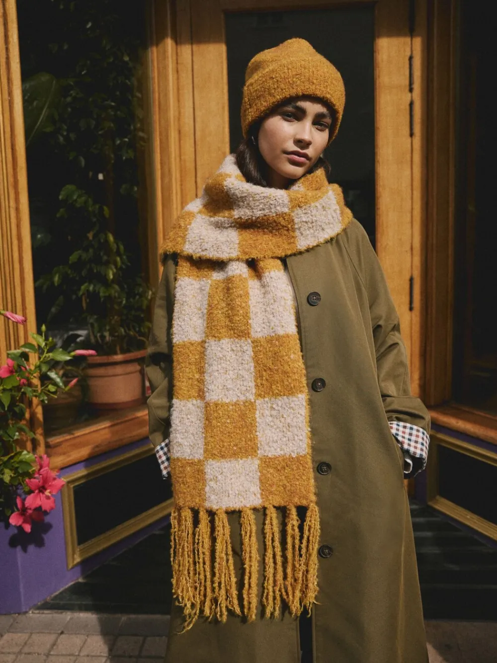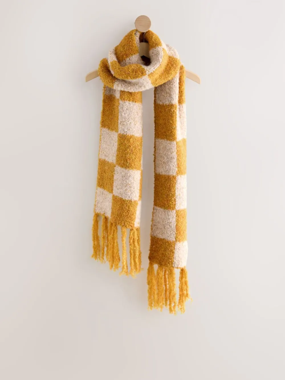 Okergeel – Checkerboard Boucle Knitted Heavweight Scarf*Next Sale