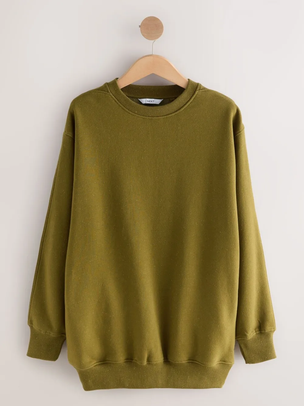 Olijfgroen – Essentials sweatshirt met relaxte pasvorm, lange snit en zakken*Next Hot
